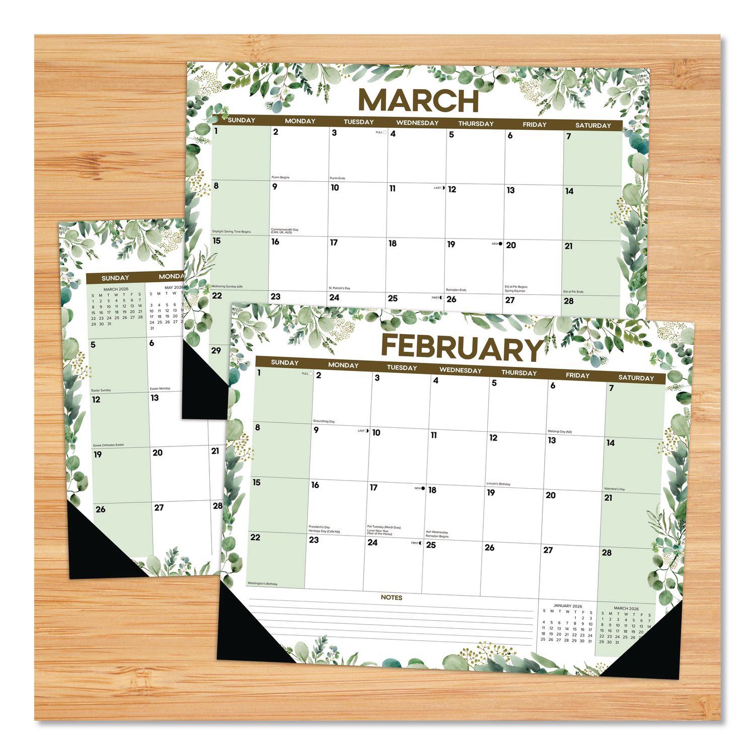 Eucalyptus Large Monthly Desk Pad Calendar, 22 x 17, White/Green Sheets, Black Headband/Corners, 12-Month (Jan to Dec) 2026
