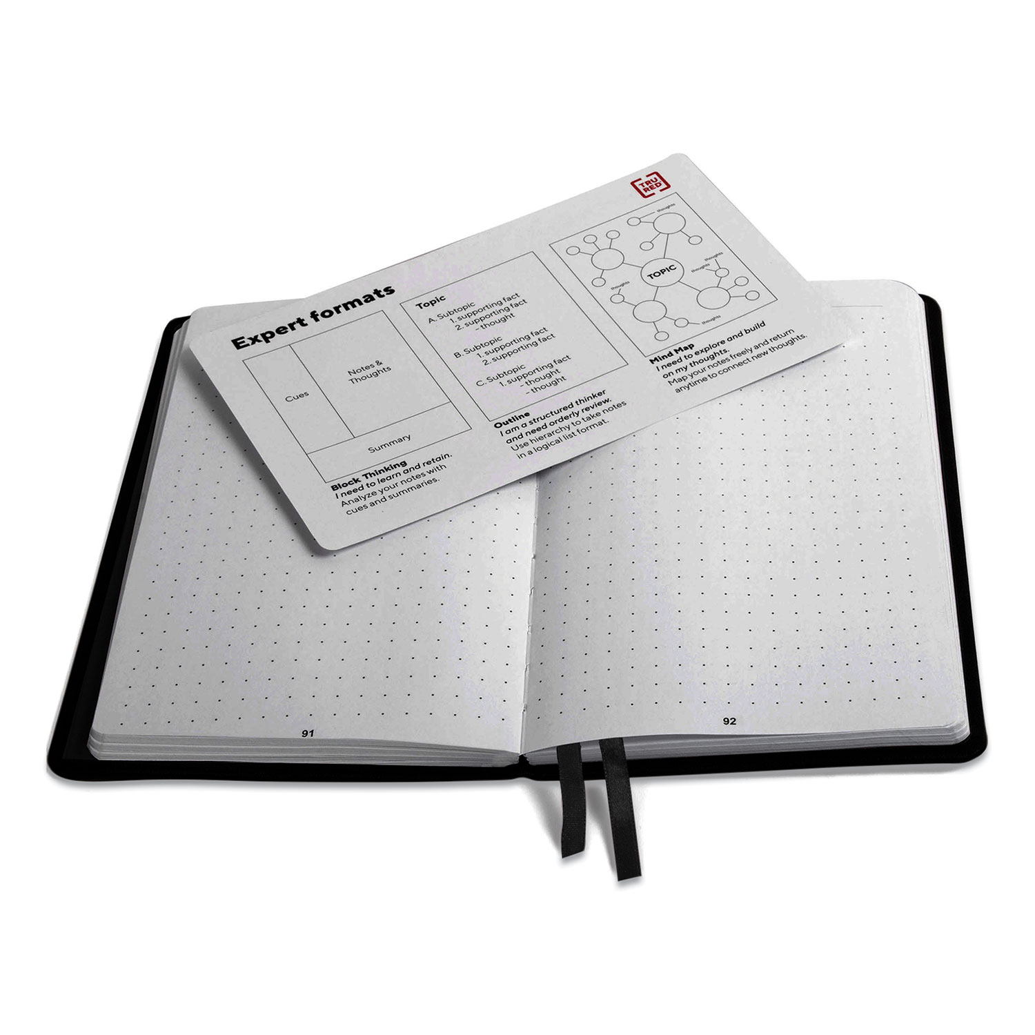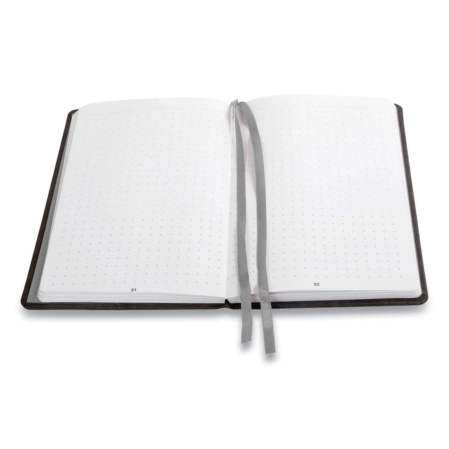 Bring your notes along to planning meetings. Two ribbon markers make it easy to find your place and the elastic band keeps everything secure. Features dotted pages to give you the freedom to brainstorm, mind map and outline. Pocket Sized: Yes; Book-Binding Type: Sewn; Book-Binding Edge: Side; Cover Color: Black.