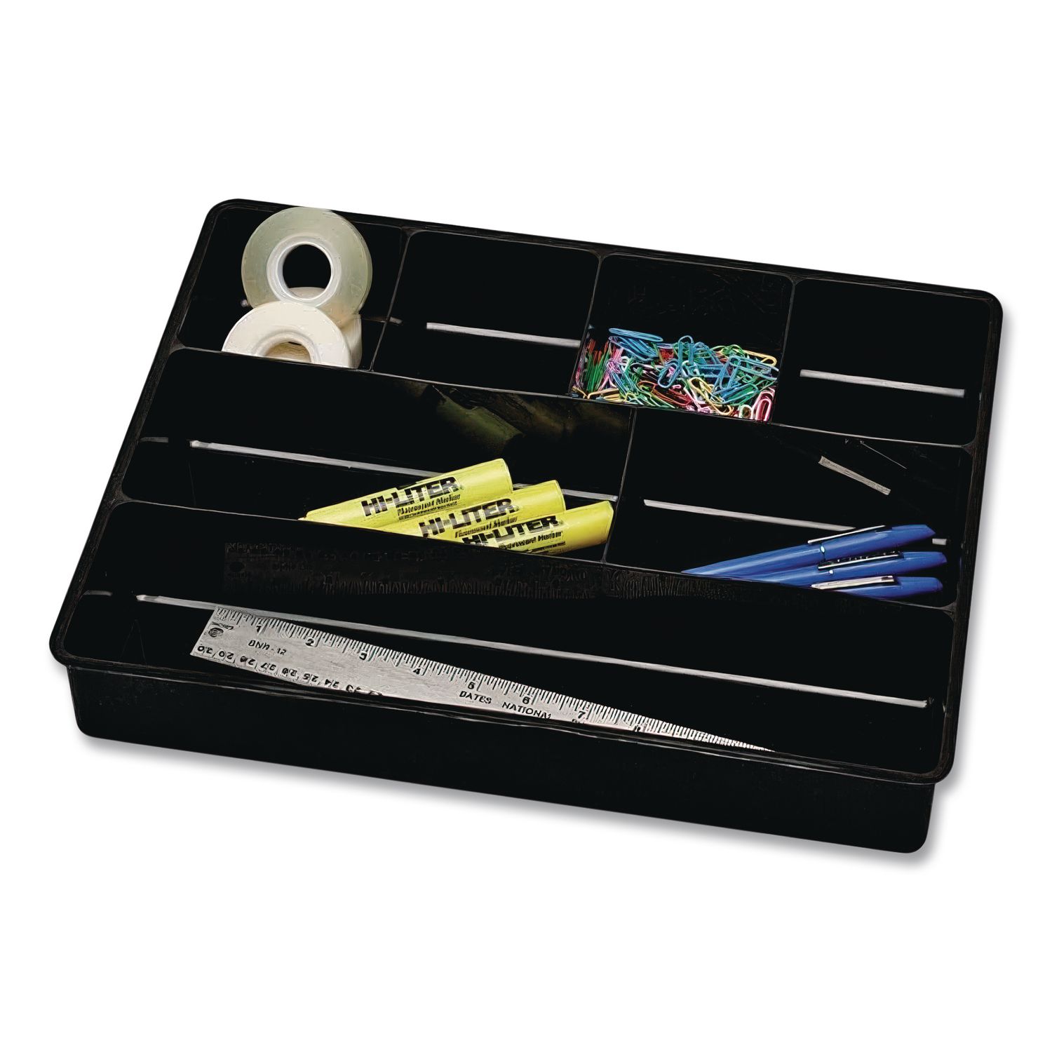 Extra Deep Desk Drawer Director Tray, Seven Compartments, 11.88 x 15 x 2.5, Plastic, Black