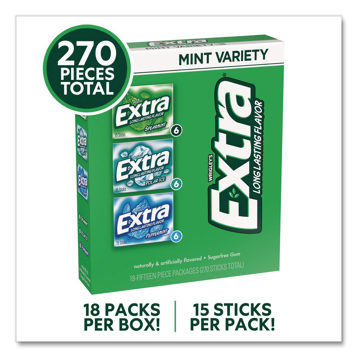 Extra Mint Variety Sugar-Free Gum, Peppermint/Polar Ice/Spearmint, 15 Sticks/Pack, 18 Packs/Carton