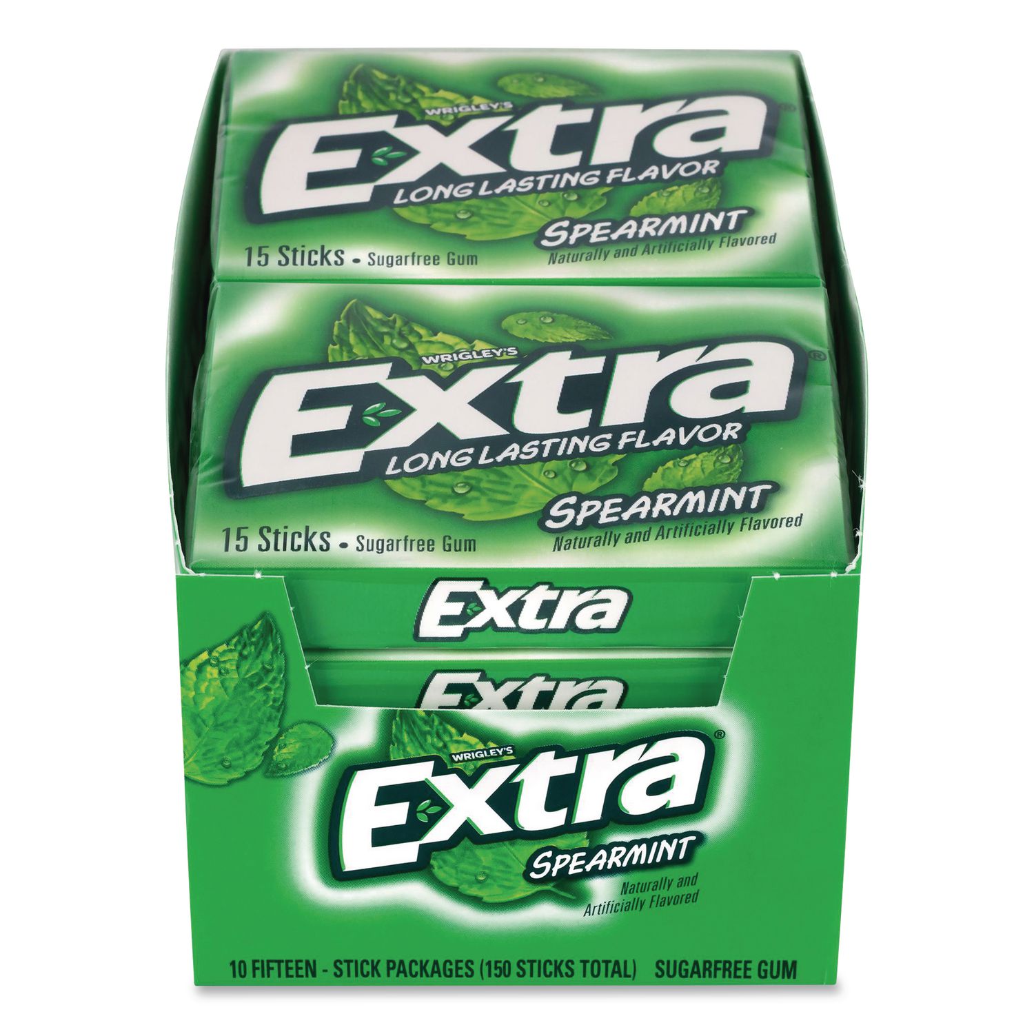 Extra Spearmint Sugar-Free Gum, Spearmint, 15 Sticks/Pack, 10 Packs/Carton