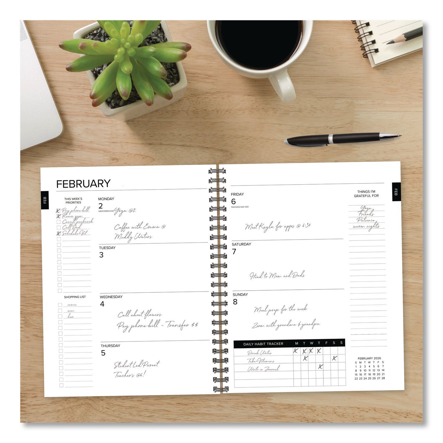 | Calendar Spread Format: | One Week per Two-Page Spread; One Month per Two-Page Spread |