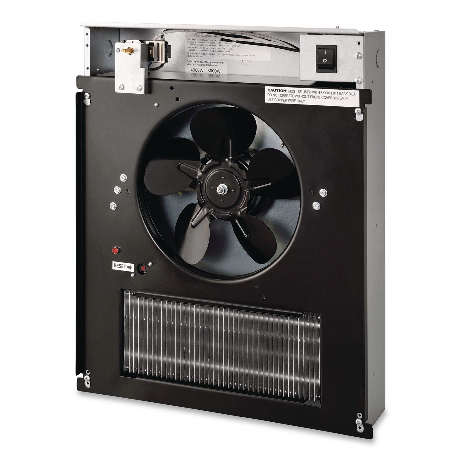 Get better heat circulation throughout your home, office, or commercial space with this Fan Forced Wall Heater. Our heaters take up little space, are efficient, and use a small amount of energy to circulate heated air. This heater features an enclosed motor and thermal protection for optimal safety. Field convertible to half wattage for energy savings. Heater Type: Forced Air Heater; Safety Features: Enclosed Motor; Over-Temperature Safety Control; Thermal Cut-Off Protection; Setting Range [Min]: 500 W; Setting Range [Max]: 4,000 W.