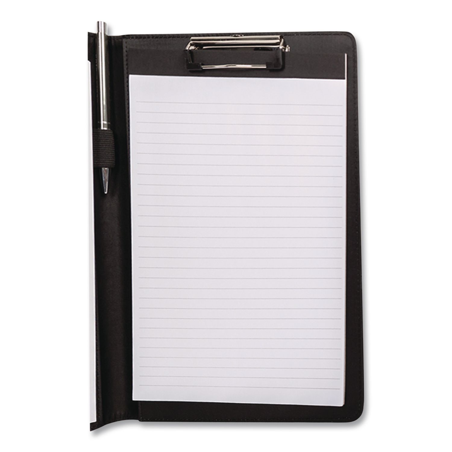 Faux-Leather Padfolio, Notched Front Cover with Clipboard Fastener, 9 x 12 Pad, 9.75 x 12.5, Black
