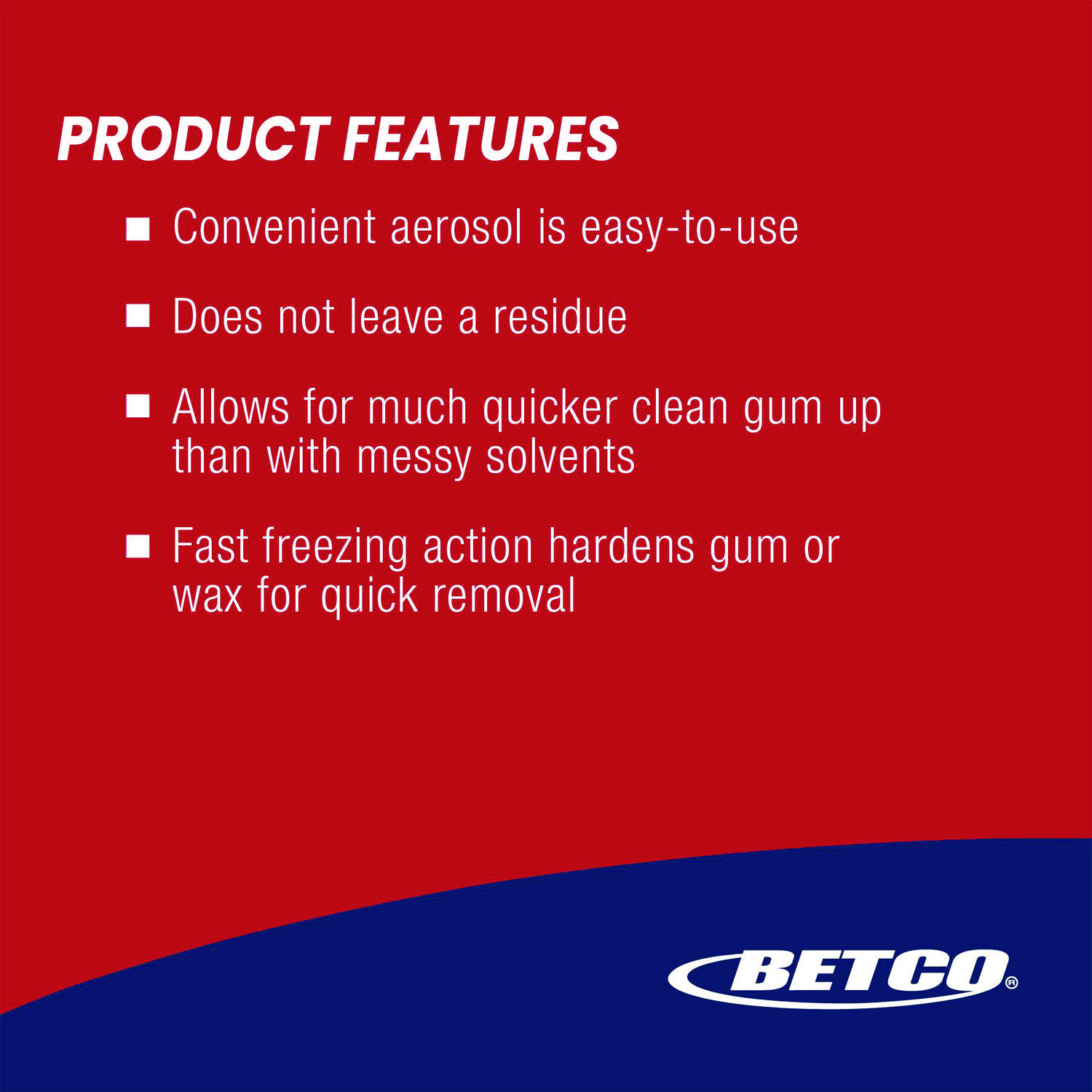 Quickly and easily removes chewing gum, candle wax and other gummy substances. The fast-freezing action of this gum remover simplifies clean up by freezing the gum so that it can be popped off with a putty knife. May be used on most surfaces. Application: Gum Remover; Applicable Material: Hard Surfaces; Chemical Compound: Propane; Dirt Types: Gum; Sticky Residue.