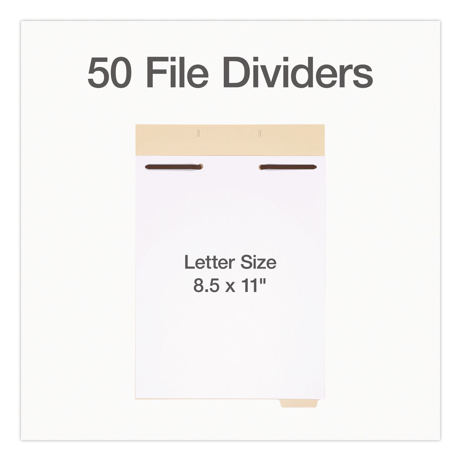 File Divider Set, End Tab: 1/5-Cut, 1 Fastener, Letter Size, Manila, 50/Pack
