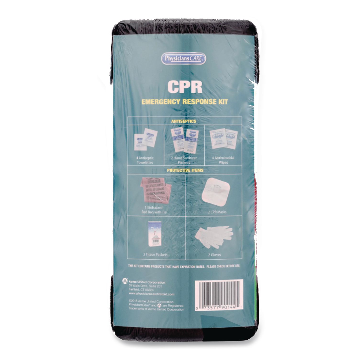 | Package Includes: | Antiseptic Wipes; Hand Sanitizer; Tissues; Biohazard Bags; Twist Ties; CPR Mask; Latex Gloves |