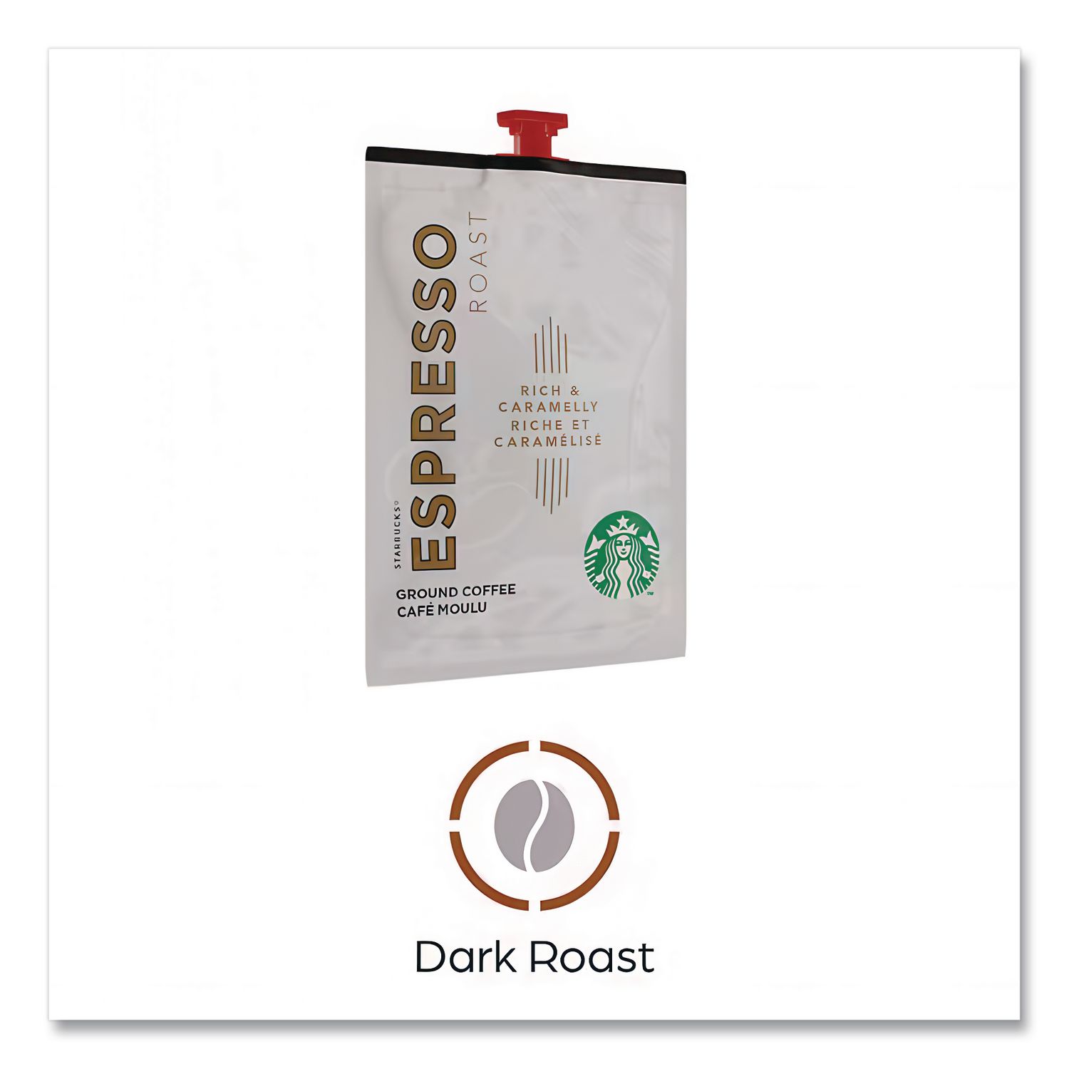 Sip on a hot, balanced cup of this ground coffee. It’s easy to replenish the coffee supply for the lobby, breakroom, or customer waiting area. Freshpack contains an innovative brewing chamber, ensuring no flavors linger from one drink to the next. Beverage Type: Coffee; Flavor: Espresso Dark Roast; Roast Type: Dark; Product Packaging: FLAVIA® Freshpack.