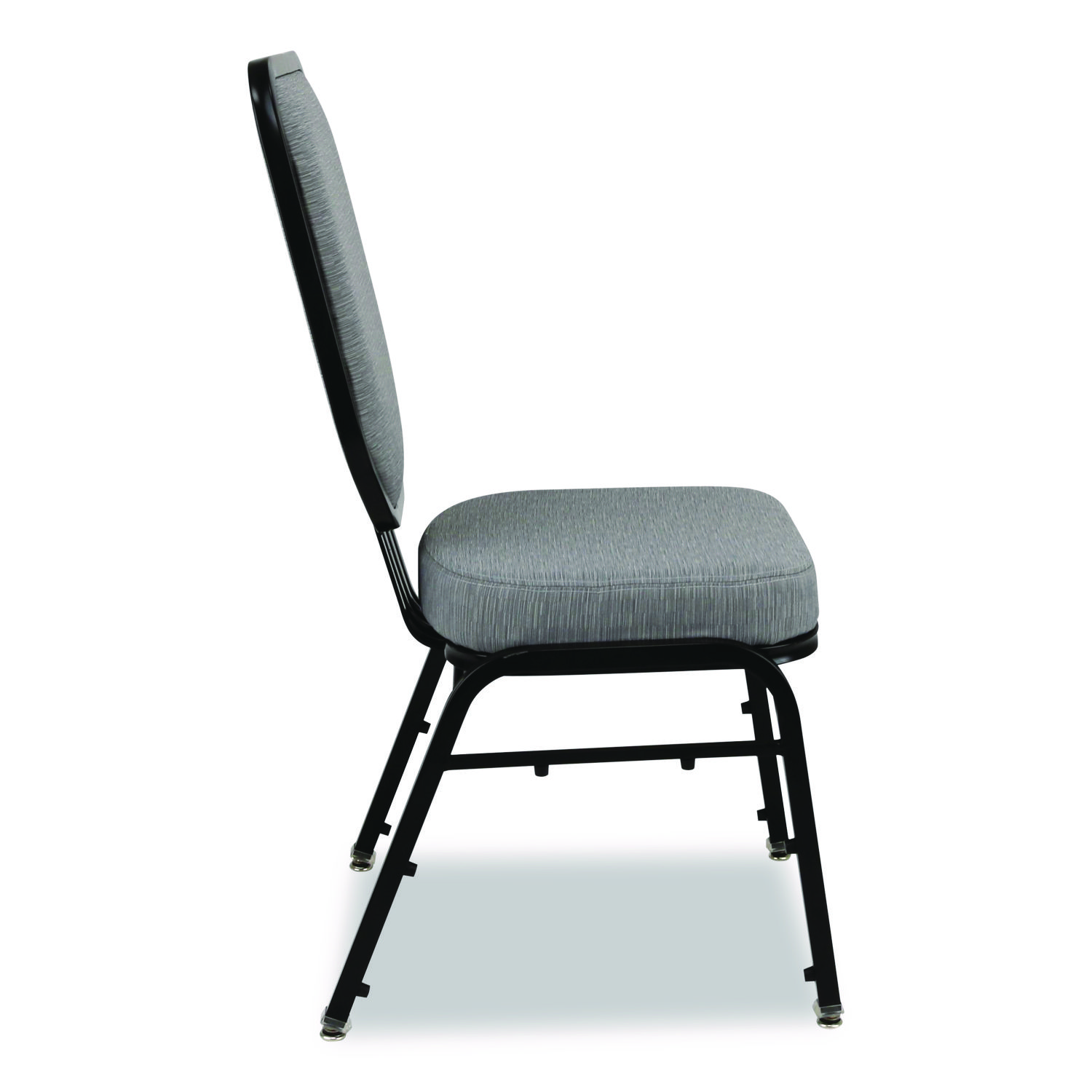 Elevate any event with our Flex-Back Banquet Chairs, the essence of style, comfort and practicality. Crafted to enhance your guests’ seating experience, these chairs seamlessly blend elegance with durability. With a backrest designed for flexibility, our chairs offer unmatched comfort and support. The contoured back conforms to the body, providing superior lumbar support during dining or presentations. Thanks to its Flex feature, the entire backrest bends to accommodate your body’s movements. Bid farewell to discomfort and welcome relaxation with every seating experience. Built to last, our banquet chairs boast sturdy construction from premium materials. The core of the seat and backrest is MDF, while the 3″ plush seat cushion is molded with polyurethane foam for enhanced comfort. The robust 18-gauge steel frame with self-leveling glides guarantees stability, while the flexible backrest adds an extra layer of resilience, ensuring longevity with frequent use. Adding to their appeal is their elegant aesthetics, our chair effortlessly complements any event decor with a timeless design, creating an ambiance of sophistication. But the benefits don’t end there. Our stackable design makes storage and setup a breeze, maximizing space efficiency whether you’re hosting an intimate gathering or a grand event. From banquet halls to conference centers, hotels to restaurants, these chairs adapt to any environment, blending seamlessly into both formal and casual settings. Above all, comfort reigns supreme. Say hello to stylish, comfortable seating—our premium banquet chairs encourage relaxation and engagement throughout even the longest events, ensuring your guests remain comfortable and focused from start to finish. Recommended Application Area(s): Breakroom & Foodservice; Conference & Meeting; General Office & Task; Seat Color: Morticia Lithium; Back Color: Morticia Lithium; Color Family: Gray.