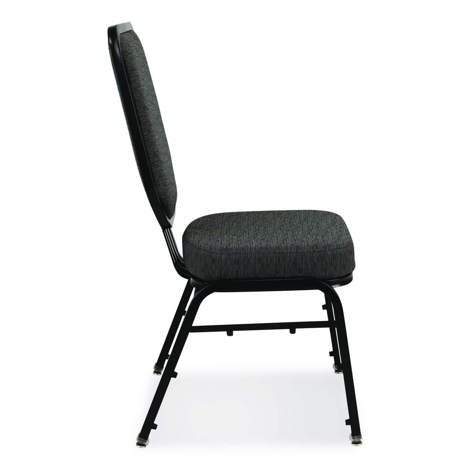 Elevate any event with our Flex-Back Banquet Chairs, the essence of style, comfort and practicality. Crafted to enhance your guests’ seating experience, these chairs seamlessly blend elegance with durability. With a backrest designed for flexibility, our chairs offer unmatched comfort and support. The contoured back conforms to the body, providing superior lumbar support during dining or presentations. Thanks to its Flex feature, the entire backrest bends to accommodate your body’s movements. Bid farewell to discomfort and welcome relaxation with every seating experience. Built to last, our banquet chairs boast sturdy construction from premium materials. The core of the seat and backrest is MDF, while the 3″ plush seat cushion is molded with polyurethane foam for enhanced comfort. The robust 18-gauge steel frame with self-leveling glides guarantees stability, while the flexible backrest adds an extra layer of resilience, ensuring longevity with frequent use. Adding to their appeal is their elegant aesthetics, our chair effortlessly complements any event decor with a timeless design, creating an ambiance of sophistication. But the benefits don’t end there. Our stackable design makes storage and setup a breeze, maximizing space efficiency whether you’re hosting an intimate gathering or a grand event. From banquet halls to conference centers, hotels to restaurants, these chairs adapt to any environment, blending seamlessly into both formal and casual settings. Above all, comfort reigns supreme. Say hello to stylish, comfortable seating—our premium banquet chairs encourage relaxation and engagement throughout even the longest events, ensuring your guests remain comfortable and focused from start to finish. Recommended Application Area(s): Breakroom & Foodservice; Conference & Meeting; General Office & Task; Seat Color: Morticia Onyx; Back Color: Morticia Onyx; Color Family: Black.