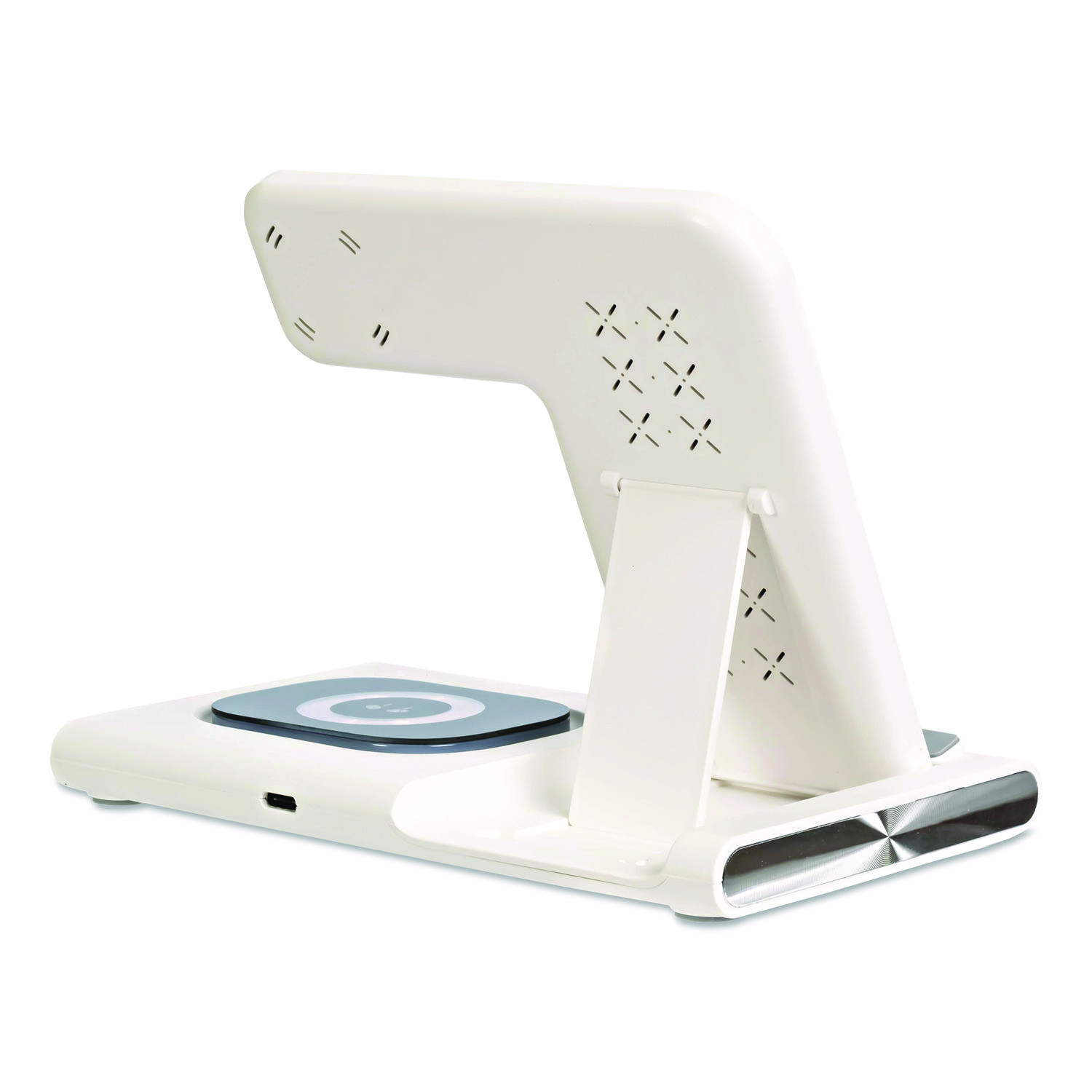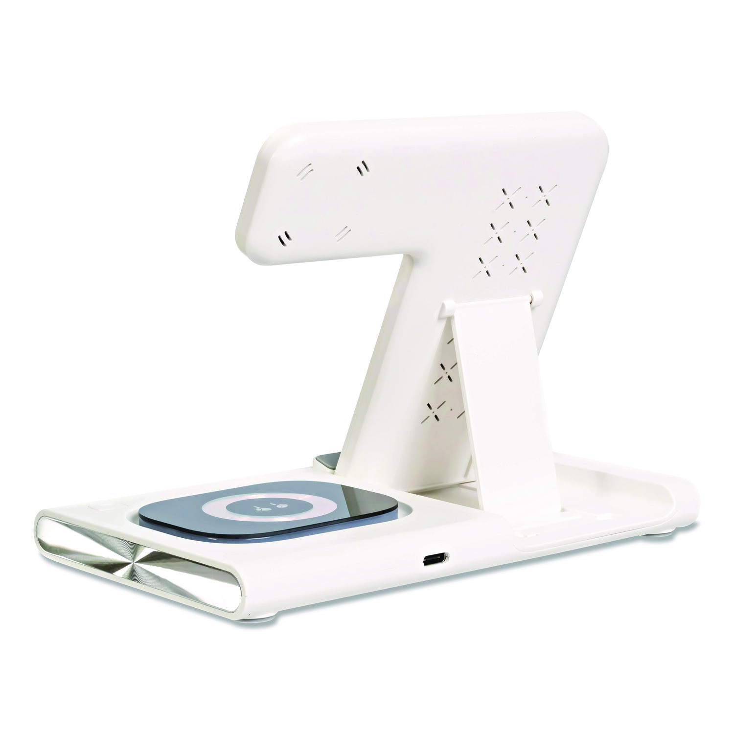 Charge up to three devices at once! Tidy up your space and eliminate cable clutter by charging your phone, watch and earbud case simultaneously. With our included fast charging adapter powered by the Qualcomm QC 3.0 chip, you’ll experience lightning-fast charging speeds. The stand features a magnetic holder to keep your phone and watch securely in place and even has a light in the base for added convenience. This high-quality charging stand is perfect for your desk or usual charging area, combining functionality with sleek design. Folding design makes it convenient for travel! For Device Type: Mobile Devices; Adapter/Charger Type: Charging Station; Power Source(s): AC Wall Outlet; Connector/Port/Interface: USB-C.