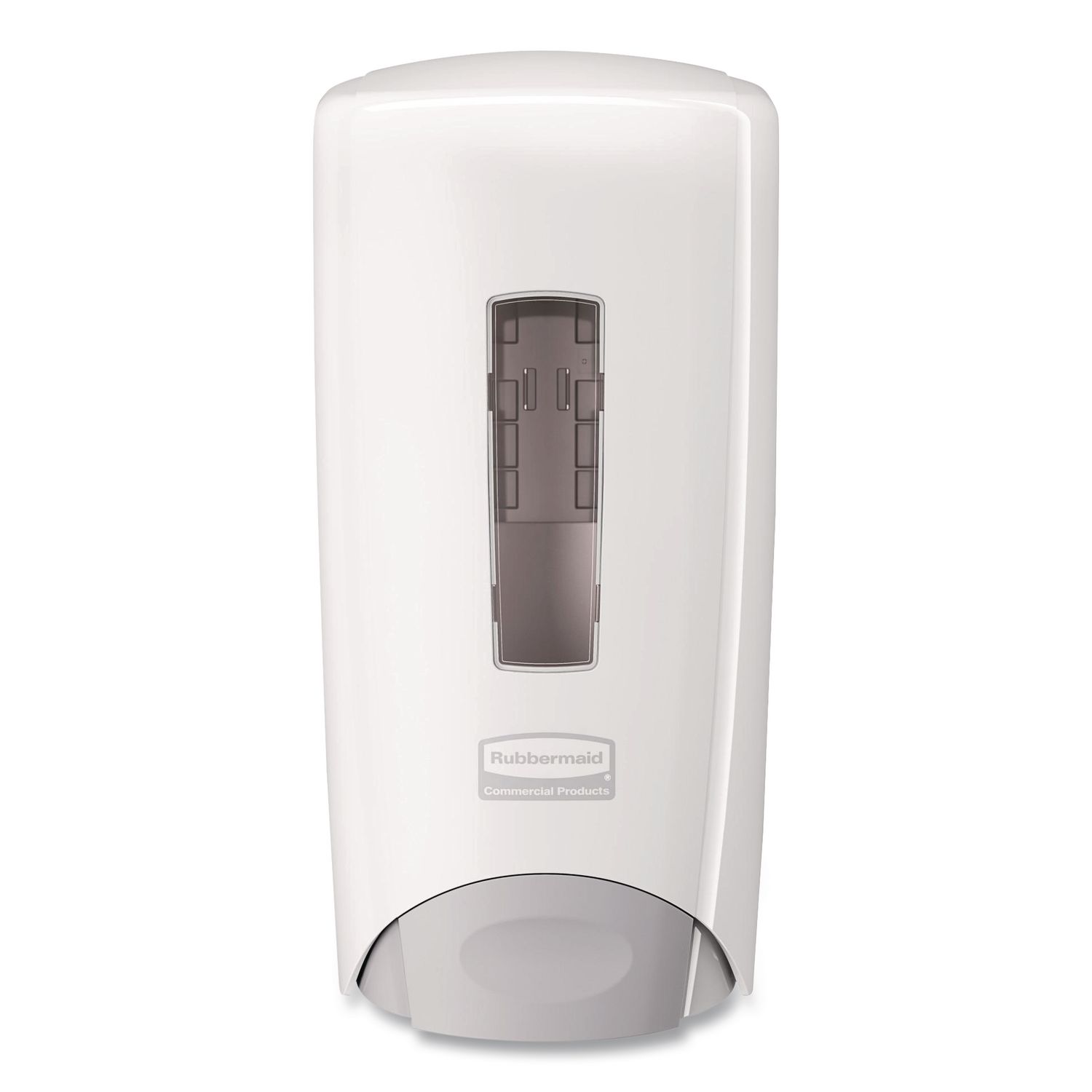 A manual wall-mounted system featuring a revolutionary design that increases your facility’s efficiency by using two different soaps, liquid or foam, with the purchase of one single dispenser. Accurate, adjustable, on-unit dose meter for effective portion control (0.4, 0.65, 1.0 mL target dosage). Superior “clean look” styling improves washroom aesthetics. Compatible with Rubbermaid® Flex™ foam and liquid refills. Soap Dispensers Type: For Foam/Lotion; Interior Volume Capacity: 1,300 mL; Mounting: Wall; Material(s): Plastic.
