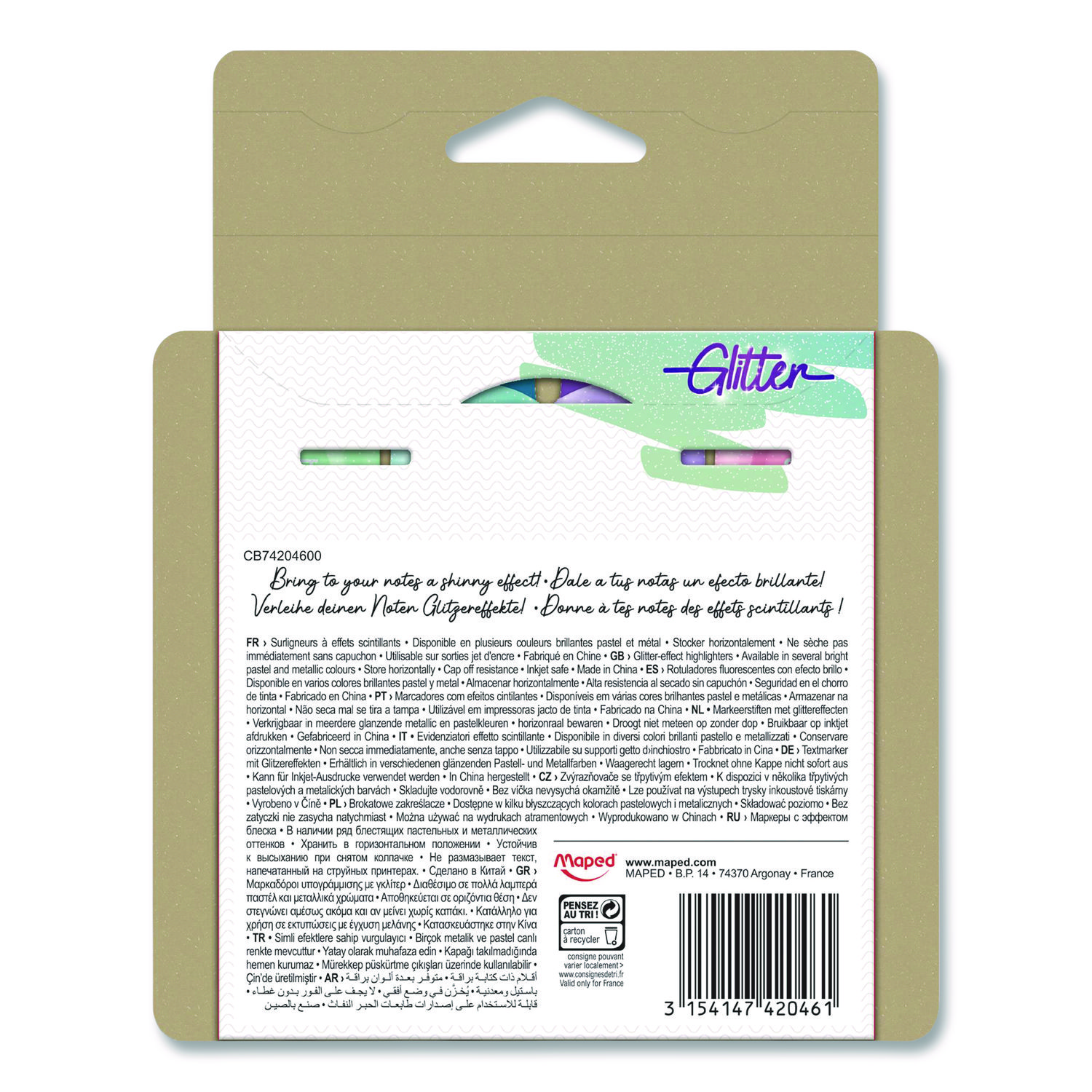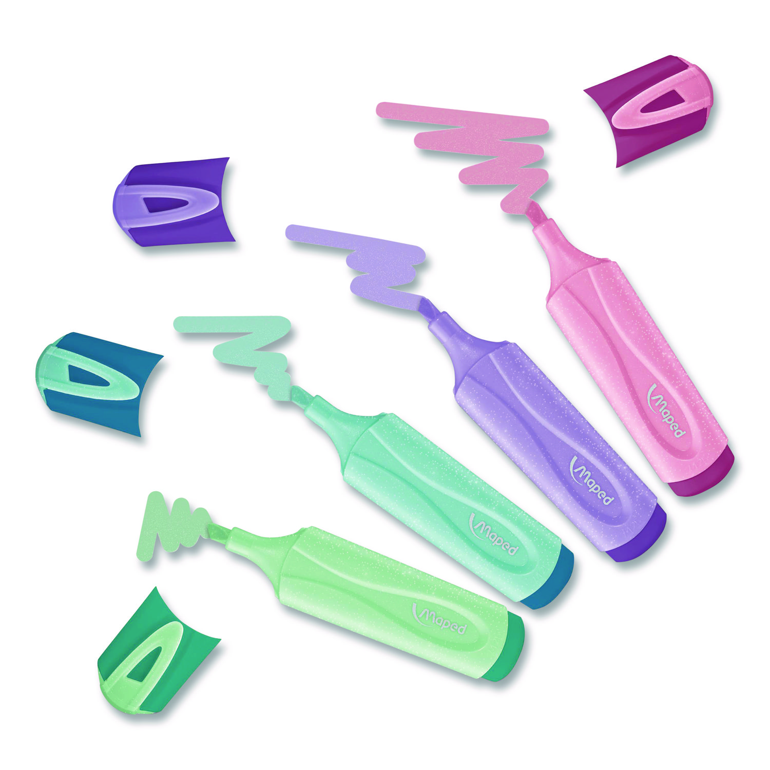 Fluo Peps Pastel Glitter Highlighter, Assorted Ink, Chisel Tip, Assorted Barrel, 4/Pack