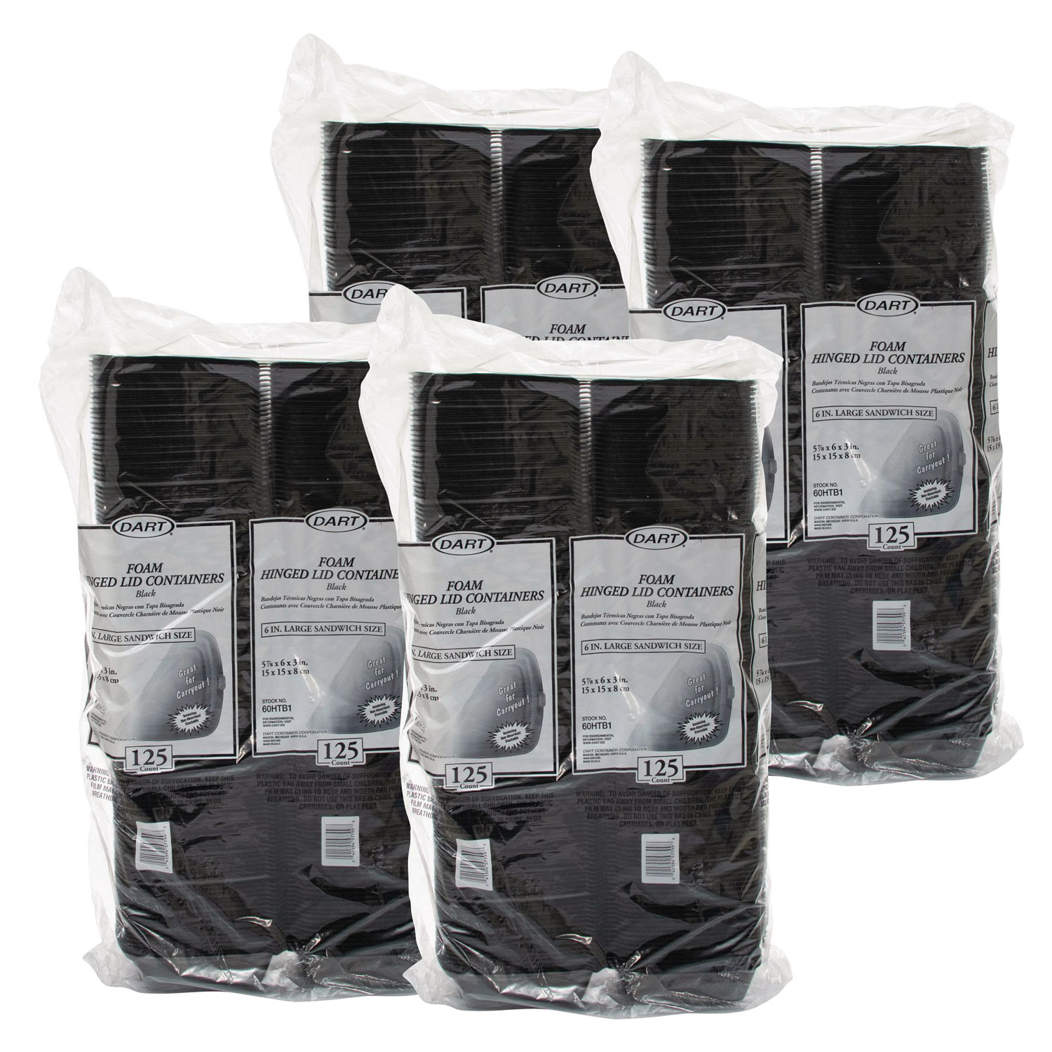 Foam Hinged Lid Containers, Large Sandwich, 6 x 5.9 x 3, Black, 125/Bag, 4 Bags/Carton