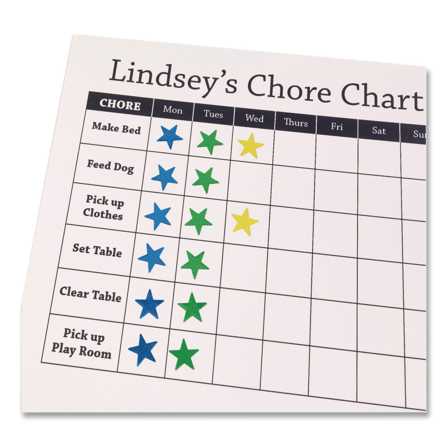 Acknowledge good work, awards and achievements with these fun labels. Perfect for use at home or in the classroom for incentive charts, student work, crafts, projects and more. Backed with permanent adhesive, these cute labels are sure to stick firmly to a variety of smooth surfaces, including paper, cardboard, plastic and glass without falling off. Hand them out as rewards, use them to track charts or incorporate them into invitations or other crafts. No matter what the project, these classic foil star stickers offer a variety of uses for parents, teachers and kids. You can even write directly on the small labels with permanent marker or for quick personalization. Label sheets are not compatible with printers. The label stickers also come in a convenient plastic package for easy portability and safe storage when not in use. Add a refreshing sparkle of positivity whenever you need it! Shape: Star; Label Size – text: 0.5″; Label Color(s): Blue; Gold; Green; Red; Silver; Color Family: Multicolor.