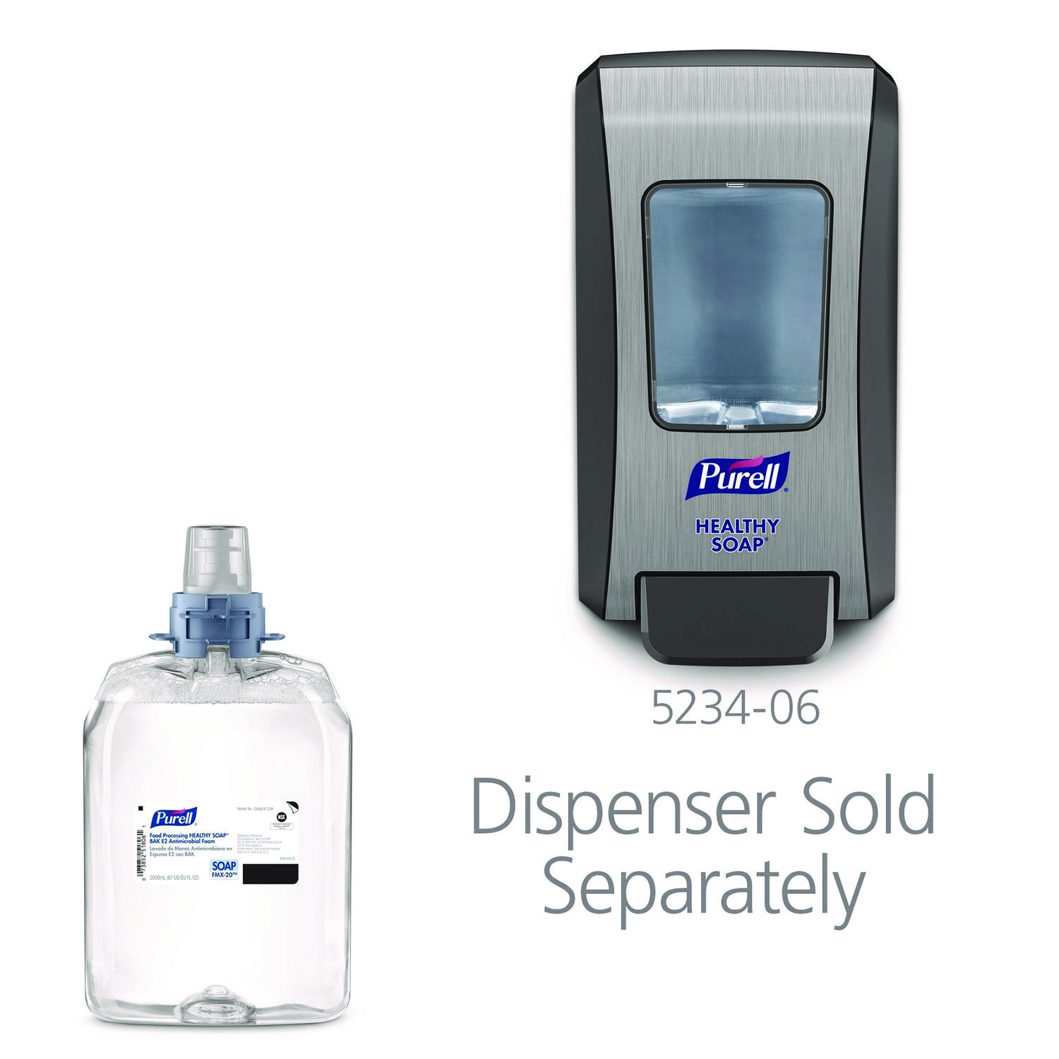 A one-step sanitizing handwash that provides quick, easy cleaning in food contact settings. Removes fats, oils and other food processing soils. Kills more than 99.99% of common foodborne pathogens, including E.coli, Salmonella and Listeria. Listed with NSF International as an E2 for use in all departments of USDA-regulated food processing environments. Exceptionally mild for frequest use. Dye-free and fragrance free. Hypoallergenic. For FMX-20 Dispensers. Soap Type: Foam; Volume Capacity: 2,000 mL; Scent: Fragrance-Free; Personal Soaps Application: Hand.