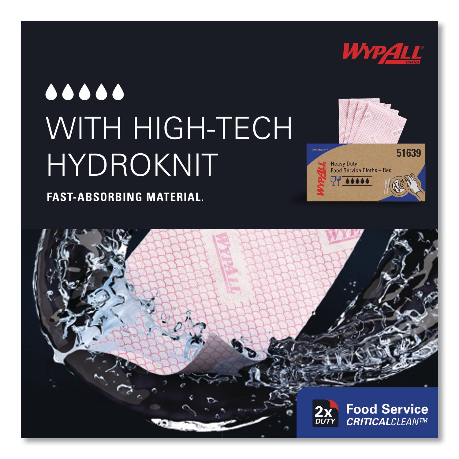 WypAll® is the number one brand of disposable wipes in the US and Canada. Create a clean work environment with light to medium duty general cleaning solutions. If you’ve been using either laundered towels or cloth rags for foodservice prep, it’s time to make the switch to heavy duty WypAll® Foodservice Cloths – they are a hygienic alternative. Available in various colors, these cleaning paper towels are made with high-tech HydroKnit®, a fast-absorbing material suitable for all common cleaning and sanitizing tasks in foodservice industries. WypAll® Foodservice Cloths are strong enough for extended use, and can be machine washed, rinsed and reused. Plus, they come conveniently and compactly packaged in a quarter fold format (an alternative to a box of rags) and are so durable that they can often be used more than once (once you’ve used them a few times, they’re disposable). When effectiveness and value top your list of criteria, you can trust WypAll® Foodservice Cloths to deliver. Towel/Wipe Type: Foodservice Towels; Fold Types: Quarter-Fold; Material(s): Hydroknit; Number of Plies: 1.