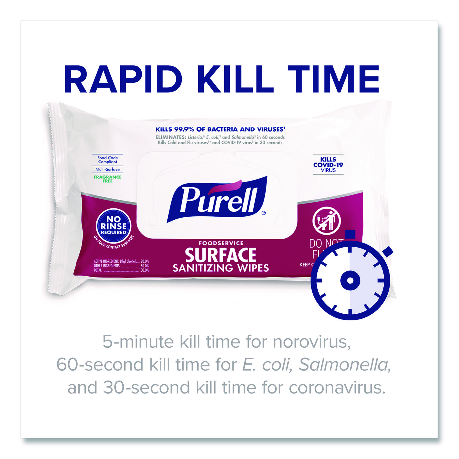 Formulated for food-contact surfaces with no rinse required, simplifying the cleaning and sanitizing process to meet foodservice needs. Kills 99.9% of viruses and bacteria. Meets EPA 60-second sanitization. Sanitizes, cleans, and disinfects. Convenient, ready to use wipes require no mixing. Towel/Wipe Type: Cleaning/Disinfecting Wipes; Applicable Material: Hard Surfaces; Material(s): Spunlace; Number of Plies: 1.