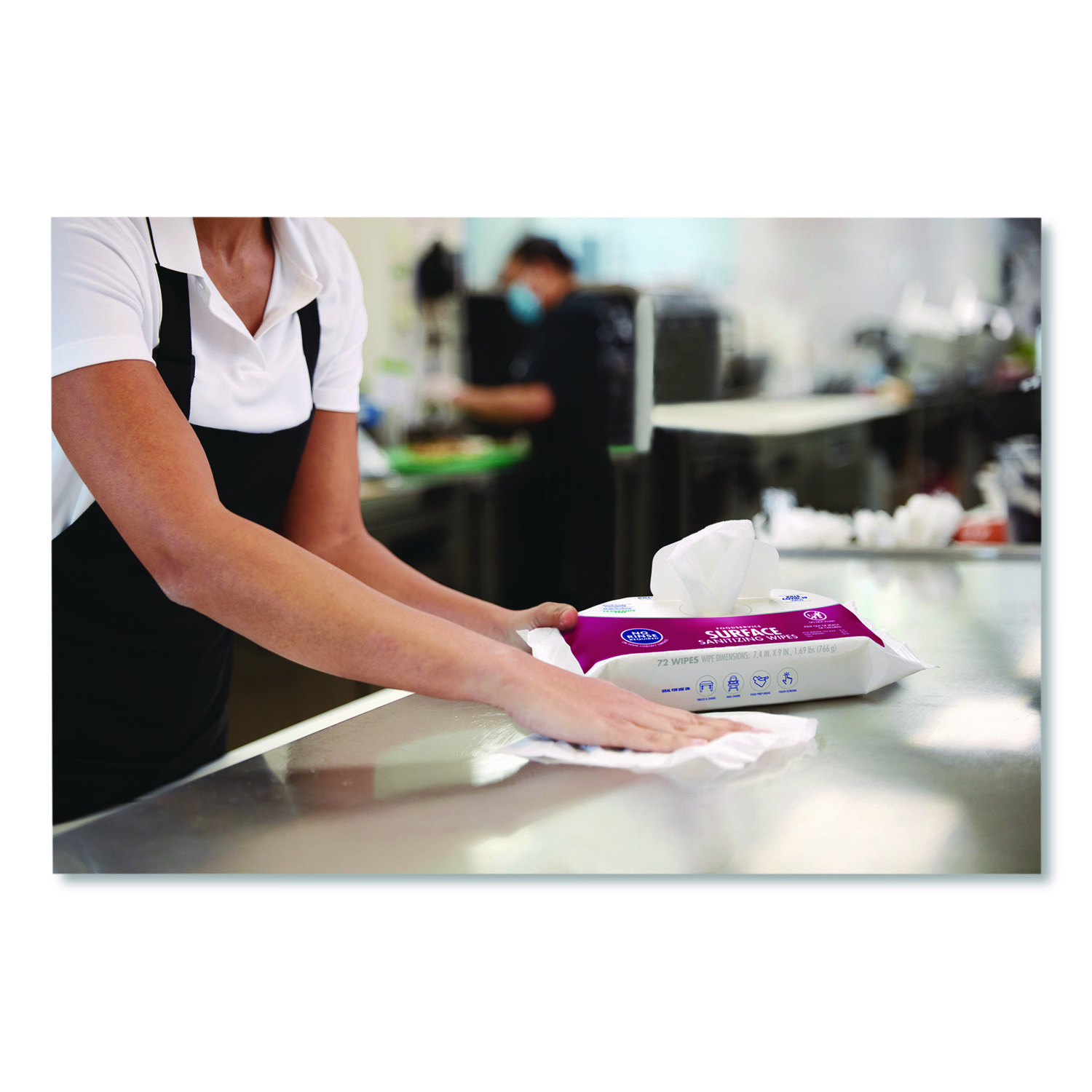 Foodservice Surface Sanitizing Wipes, 1-Ply, 7.4 x 9, Fragrance Free, White, 72 Wipes/Resealable Pack