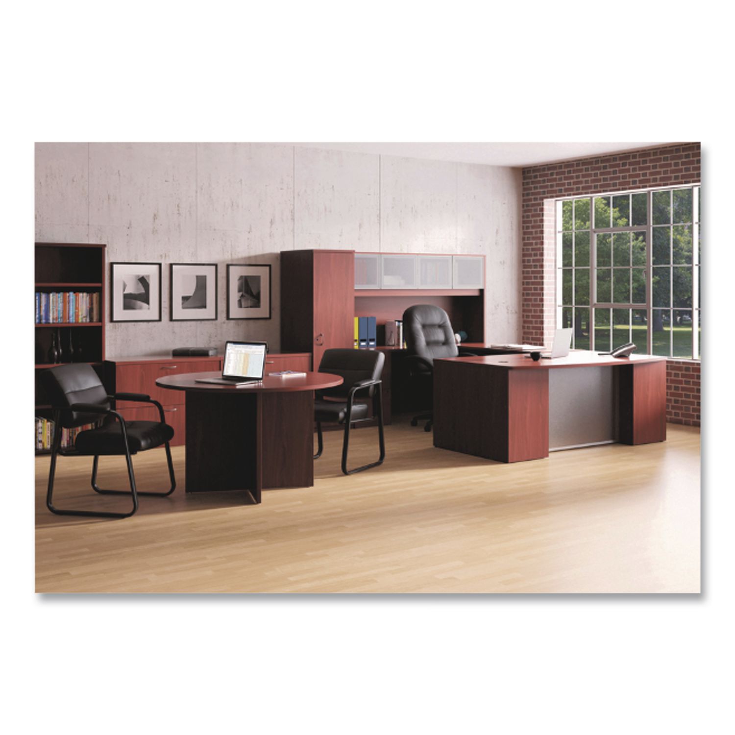 Scratch-, stain- and wear-resistant laminate. Combine with other Foundation Series items for a complete office design. Series Name: Foundation; Worksurface/Base Color: Mahogany; Color Family: Mahogany; Worksurface Shape: Rectangular.