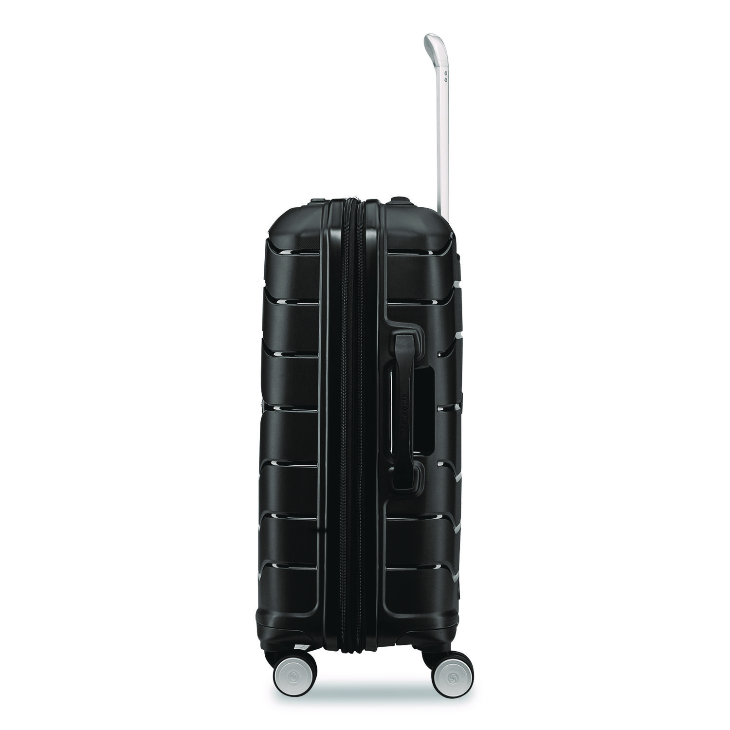 Extremely lightweight and durable, the Samsonite® Freeform has been created to bring the strength and maneuverability our customers have come to expect combined with a truly unique design. With a more streamlined panel, an increased packing capacity, and thoughtfully integrated components, this lightweight carry-on offers a very spacious and effortless ride. Four-Wheeled Spinner. Color(s): Black; Color Family: Black; Material(s): Polypropylene; Carrying Handle: Yes.