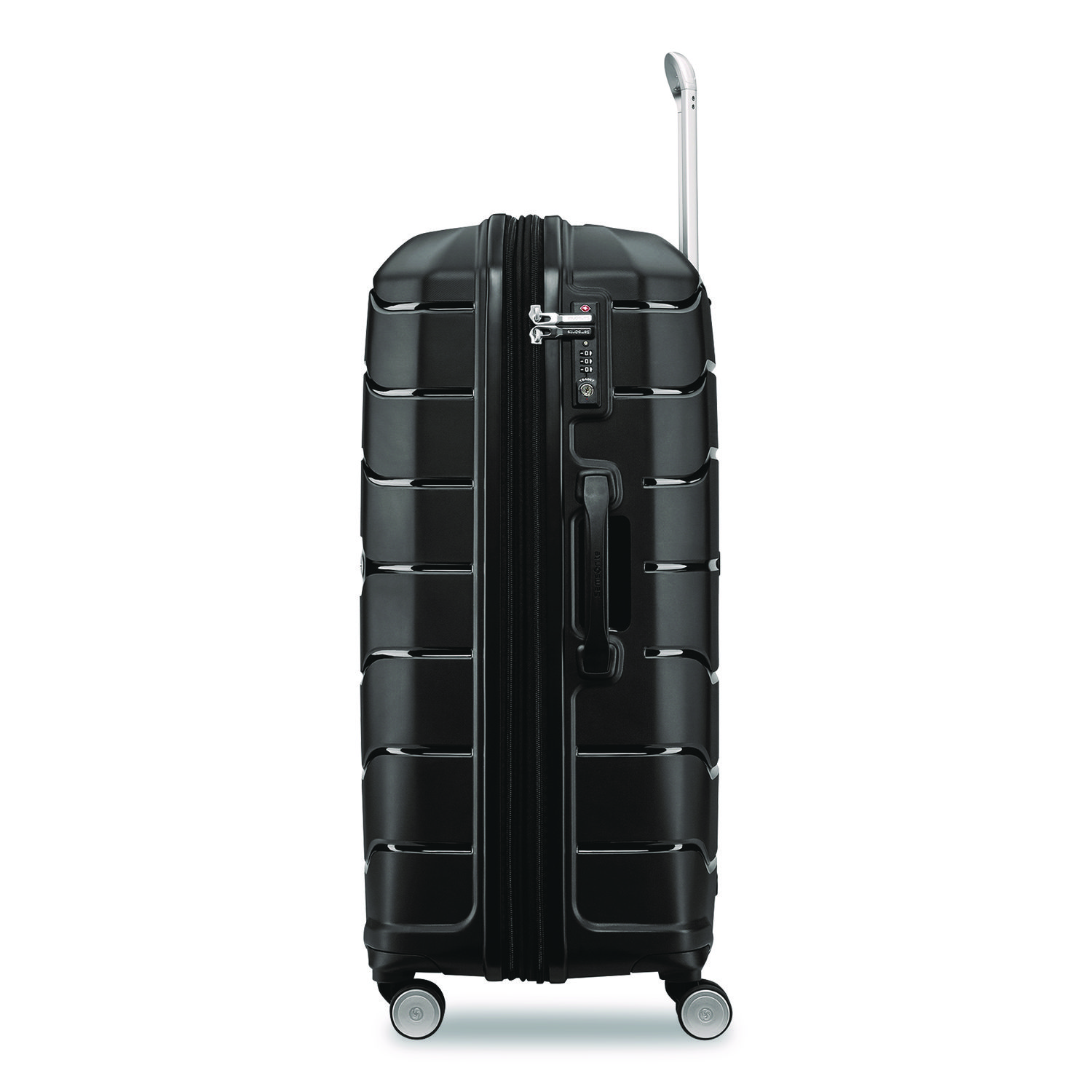 Extremely lightweight and durable, the Samsonite® Freeform has been created to bring the strength and maneuverability our customers have come to expect combined with a truly unique design. With a more streamlined panel, an increased packing capacity, and thoughtfully integrated components, this lightweight carry-on offers a very spacious and effortless ride. Four-Wheeled Spinner. Color(s): Black; Color Family: Black; Material(s): Polypropylene; Carrying Handle: Yes.