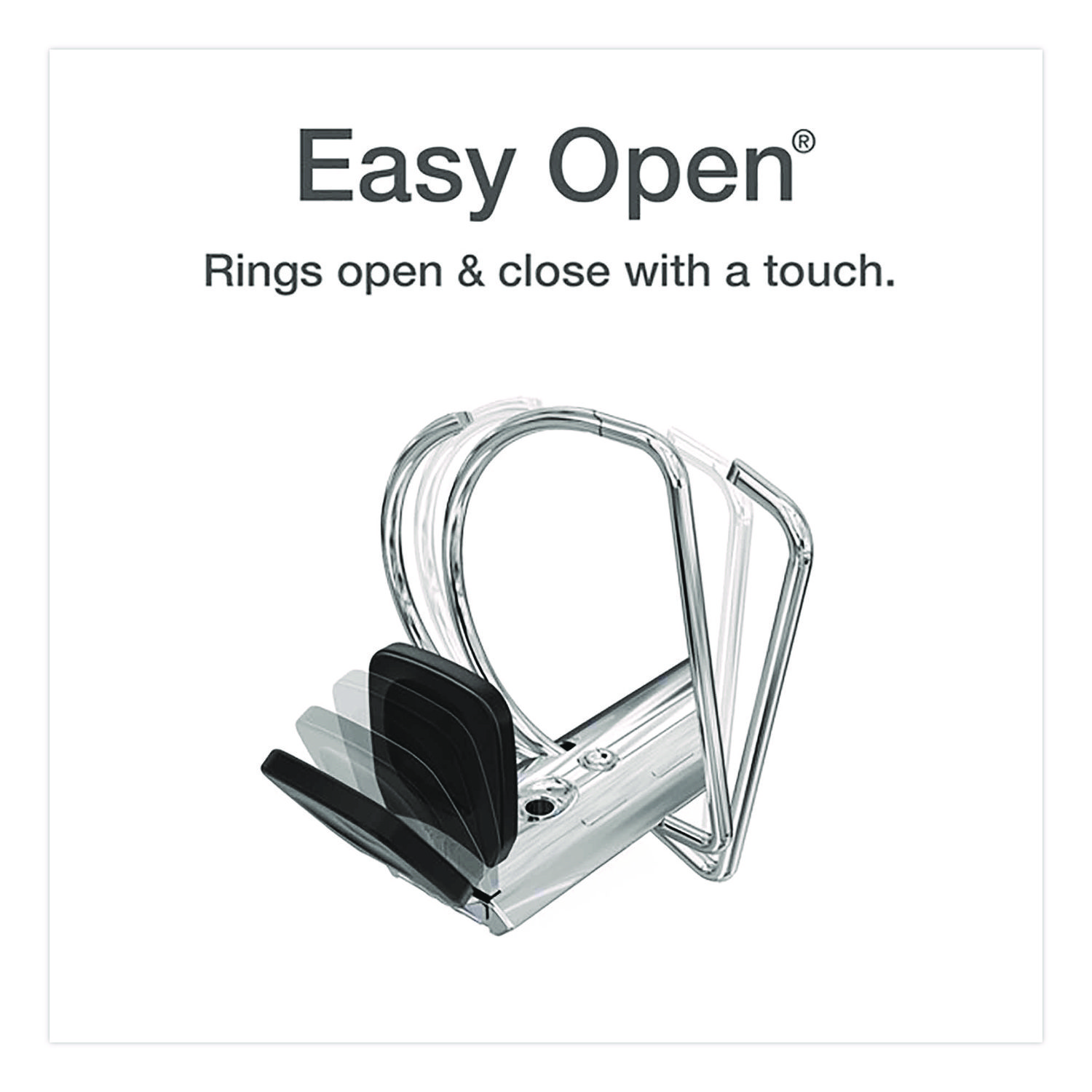 Magnetic flap closure stabilizes binder, allowing it to stand and stack unaided. Five color ID rings (provided with each binder) snap in and out for easy identification. Clear overlay for customization on all three sides with one letter-sized sheet. ONE-TOUCH® Easy Open® rings open, close and lock with one simple motion. Non-stick, PVC-free cover with clear overlay for customization of front, back and spine. Binder Type: Ring; Binder Style: View; Binder Size Capacity: 5″; Binder Sheet Capacity: 1,050.