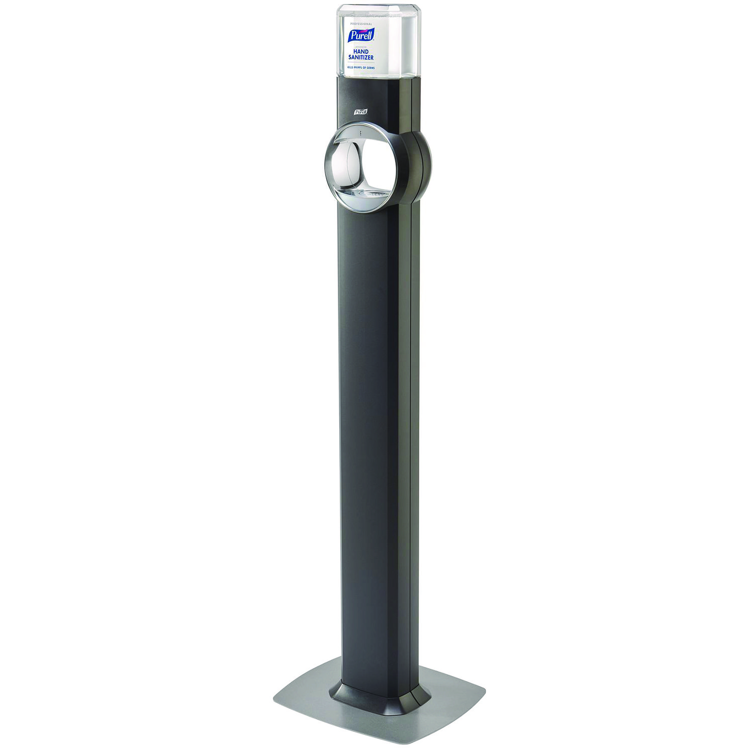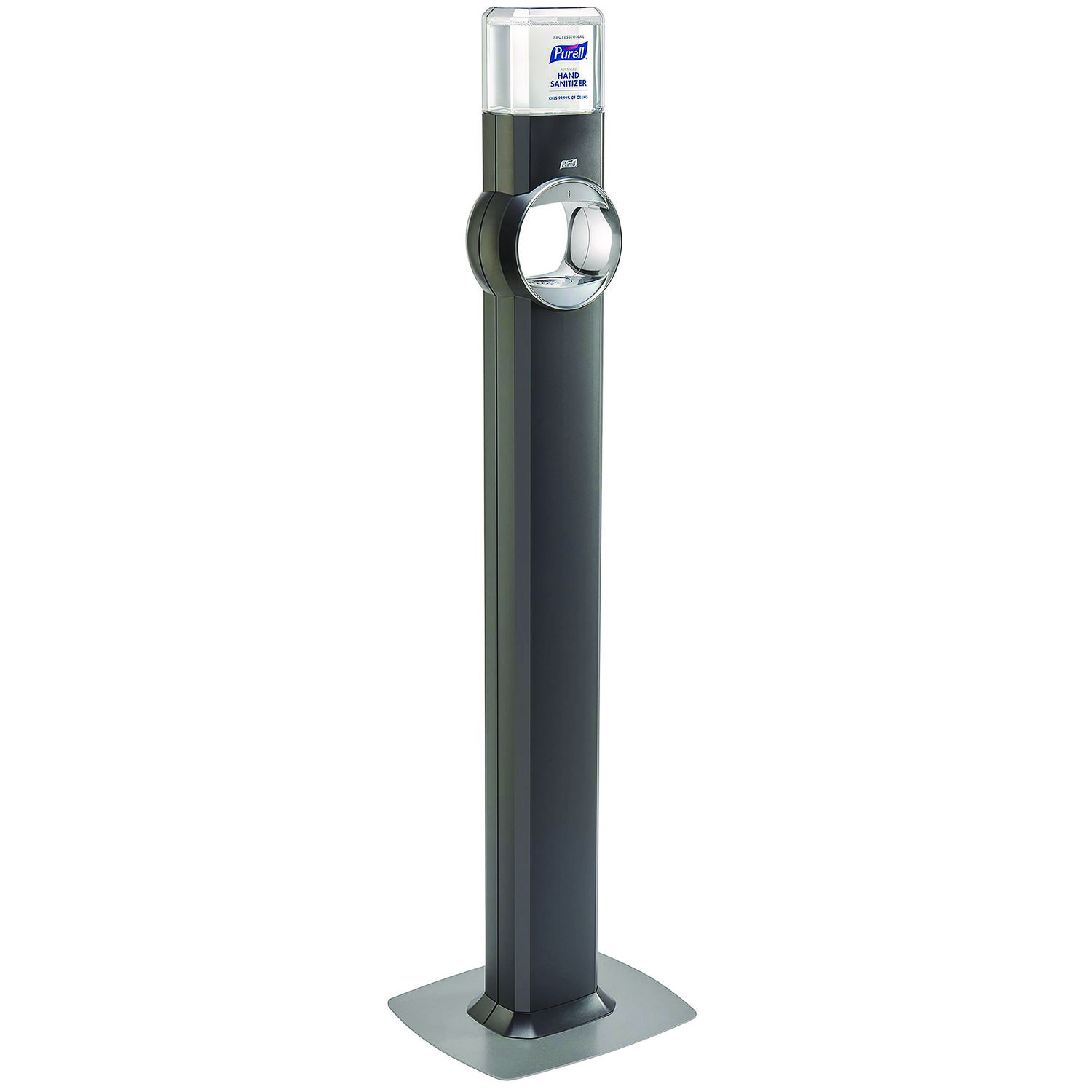 Premium, reliable touch-free dispenser stand for PURELL Hand Sanitizer. An elegant floor stand that reinforces high quality standards, while complimenting any décor. Includes Four “C” cell batteries—no tools required for replacing batteries. Multi-directional design unlocks new placement possibilities wherever hand hygiene is needed. Uses same AT-A-GLANCE™ refills as PURELL ES6, making it easy to monitor product levels with just one look. Seamlessly integrated tray to help maintain cleanliness. Low-profile baseplate maximizes stability and hides dirt. Mounting Details: Floor Stand; Holds: 1,200 mL; Material(s): ABS Plastic; Color(s): Graphite.