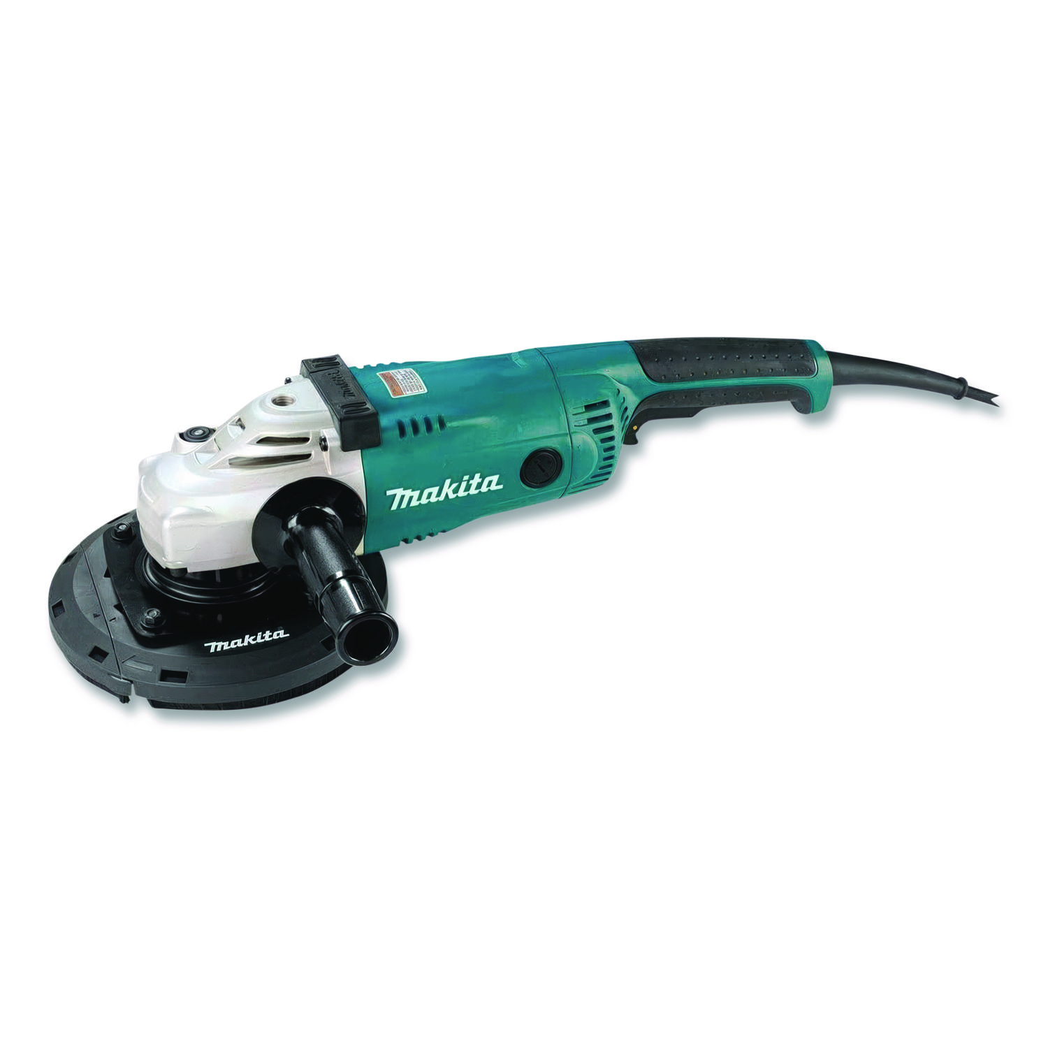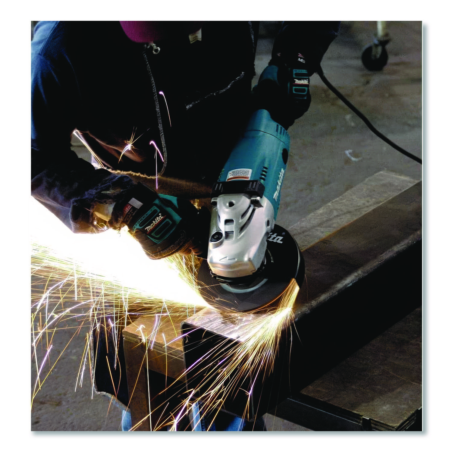 Makita GA7021 Corded Angle Grinder’s 15 amps can handle the toughest industrial applications. Labyrinth construction seals and protects the motor and bearings from dust and debris for longer tool life. Rotatable gear housing can be positioned every 90 degrees. Protective zig-zag varnish seals the armature from dust and debris for longer tool life. Tool-less wheel guard adjustment for easy clamping. AC/DC switch for use with alternative power source. Externally accessible brushes for greater serviceability. Ergonomic soft grip provides increased comfort on the job. Ideal for welders, fabricators, masons, maintenance/repair and more. Grinder Type: Angle; Wheel Diameter: 7″; Speed: 6,600 rpm; Voltage: 120 V.