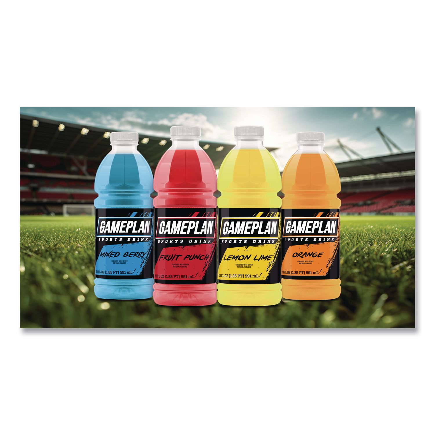 A tasty sports drink made with natural flavors. Convenient hydration solution. Available in mouth-quenching flavors. Get your hydration with Gameplan®. Beverage Type: Sports Drink; Flavor: Orange; Product Packaging: Bottle; Volume Capacity: 20 oz.