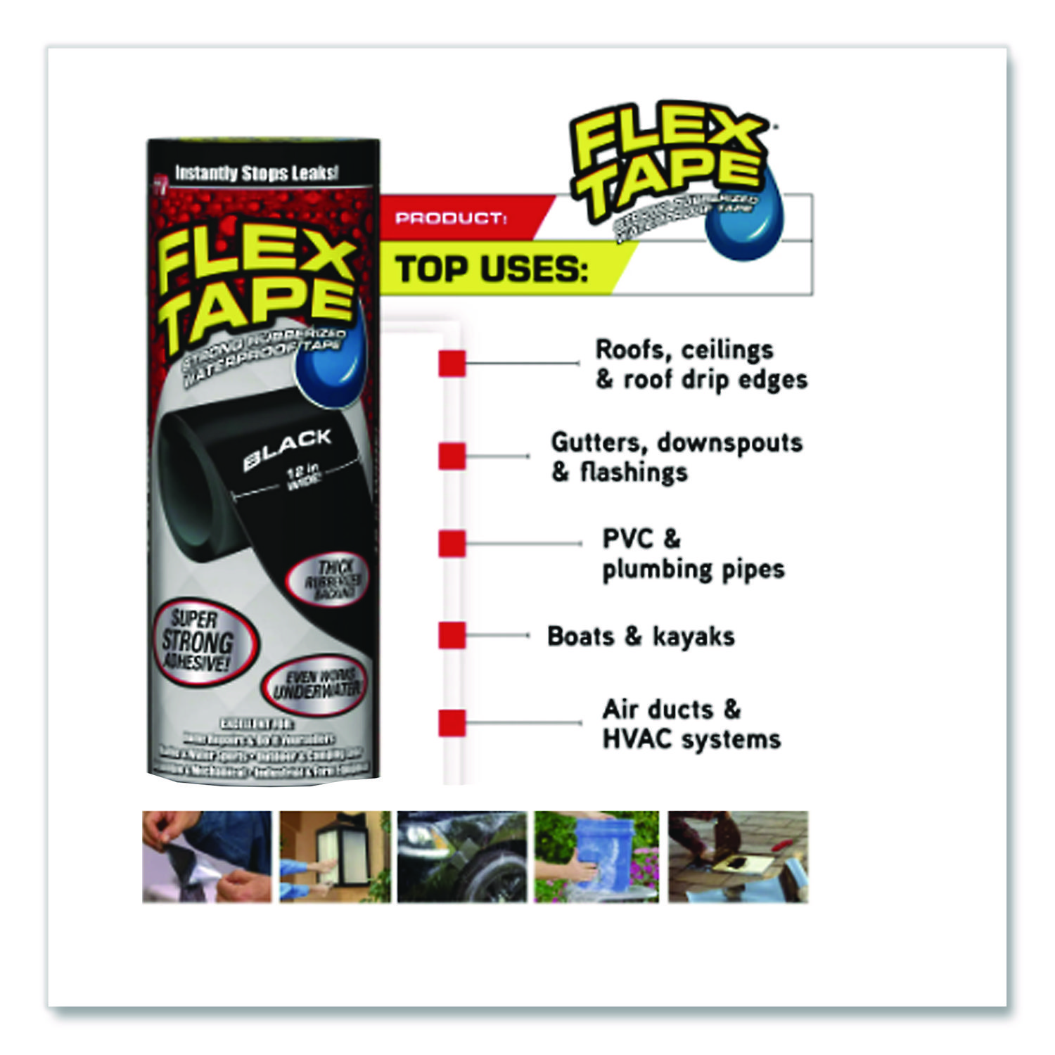 Flex Seal general purpose tape is the original super-strong, waterproof tape that can patch, bond, seal, and repair virtually anything! It is specially formulated with a thick, flexible, rubberized backing that conforms to any shape or object. Unlike other tapes available, Flex Seal tape’s bond will increase with time and pressure. Perfect for a variety of surfaces with many uses around the car, boat, RV or home. Grade: General Purpose; Dispenser Included: No; Backing Material: Rubberized; Width: 4″.