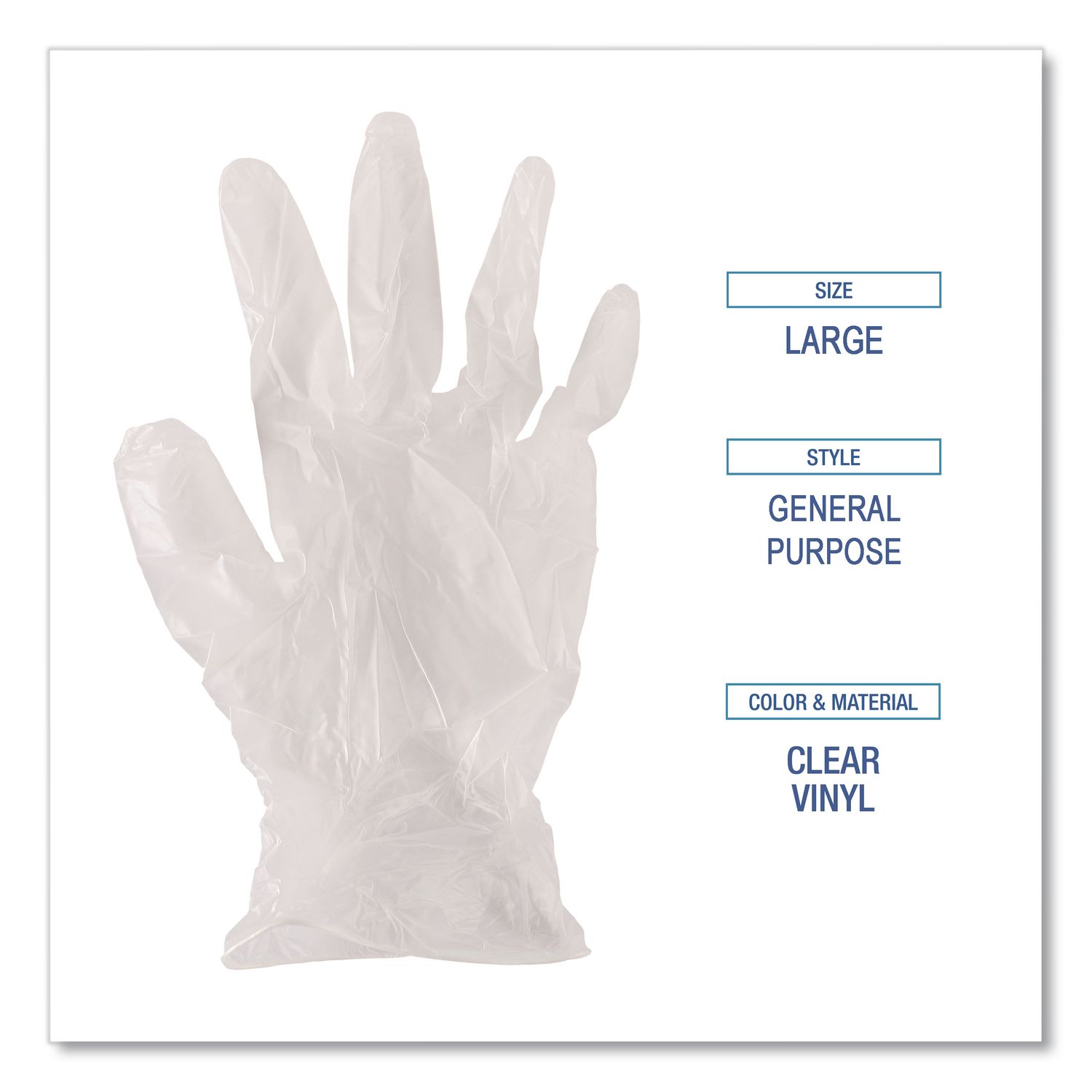 General Purpose Vinyl Gloves, Powder-Free, X-Large, 2.6 mil Thick, 9.5″ Long, Clear, 100/Box, 10 Boxes/Carton