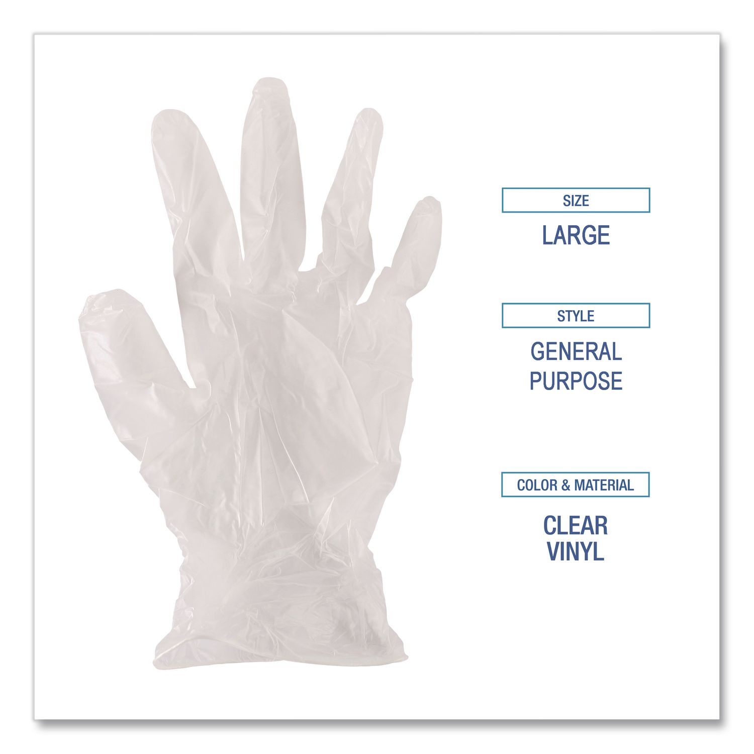 General Purpose Vinyl Gloves, Powder-Free, X-Large, 2.6 mil Thick, 9.5″ Long, Clear, 100/Box