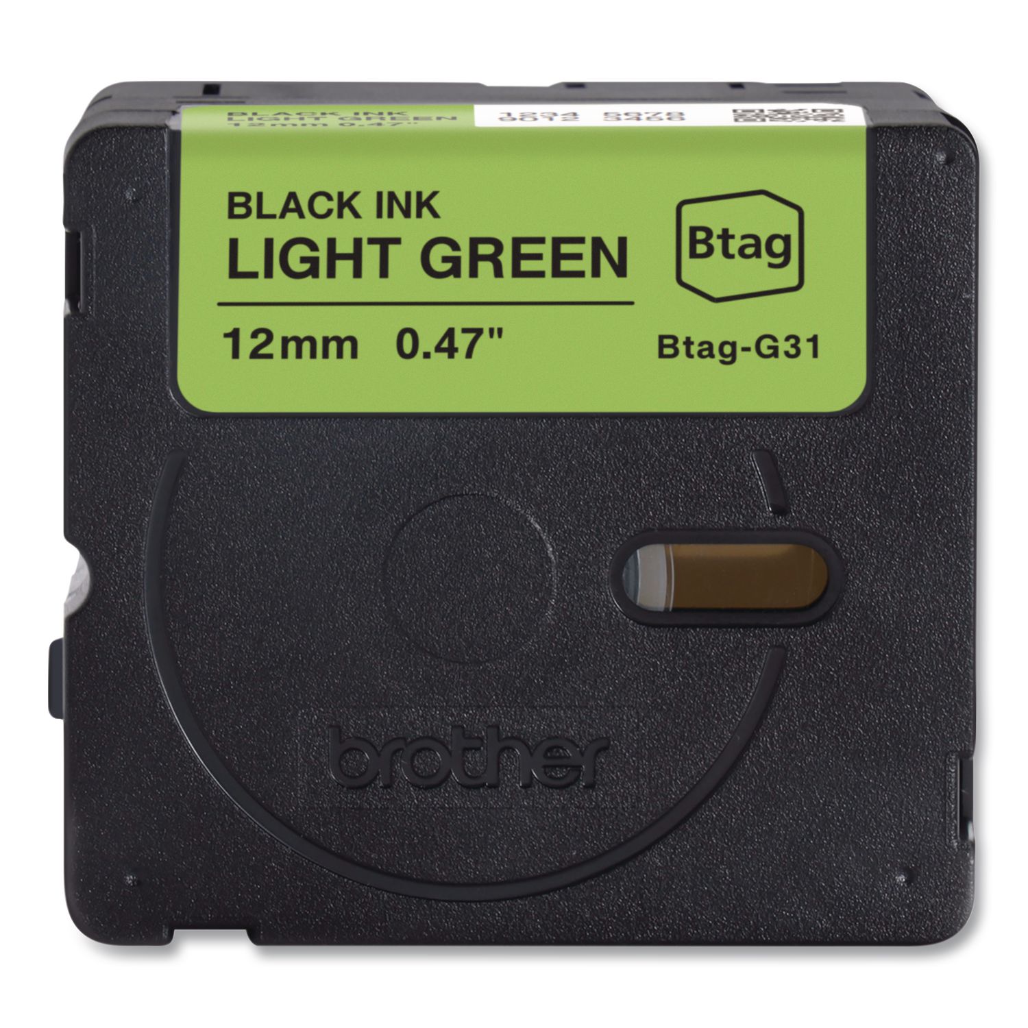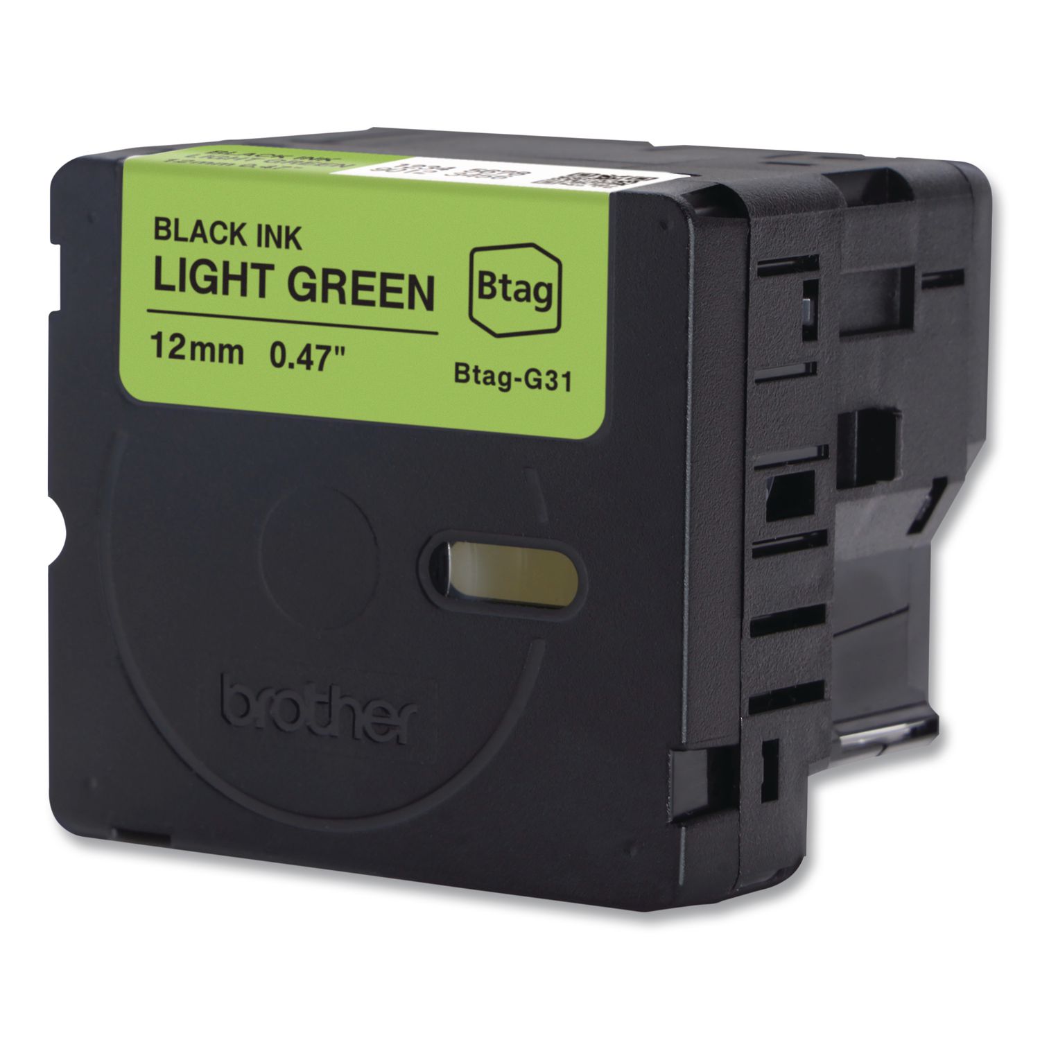 Genuine P-Touch BTAG Label Tapes, 0.47″ x 13.1 ft, Black on Light Green