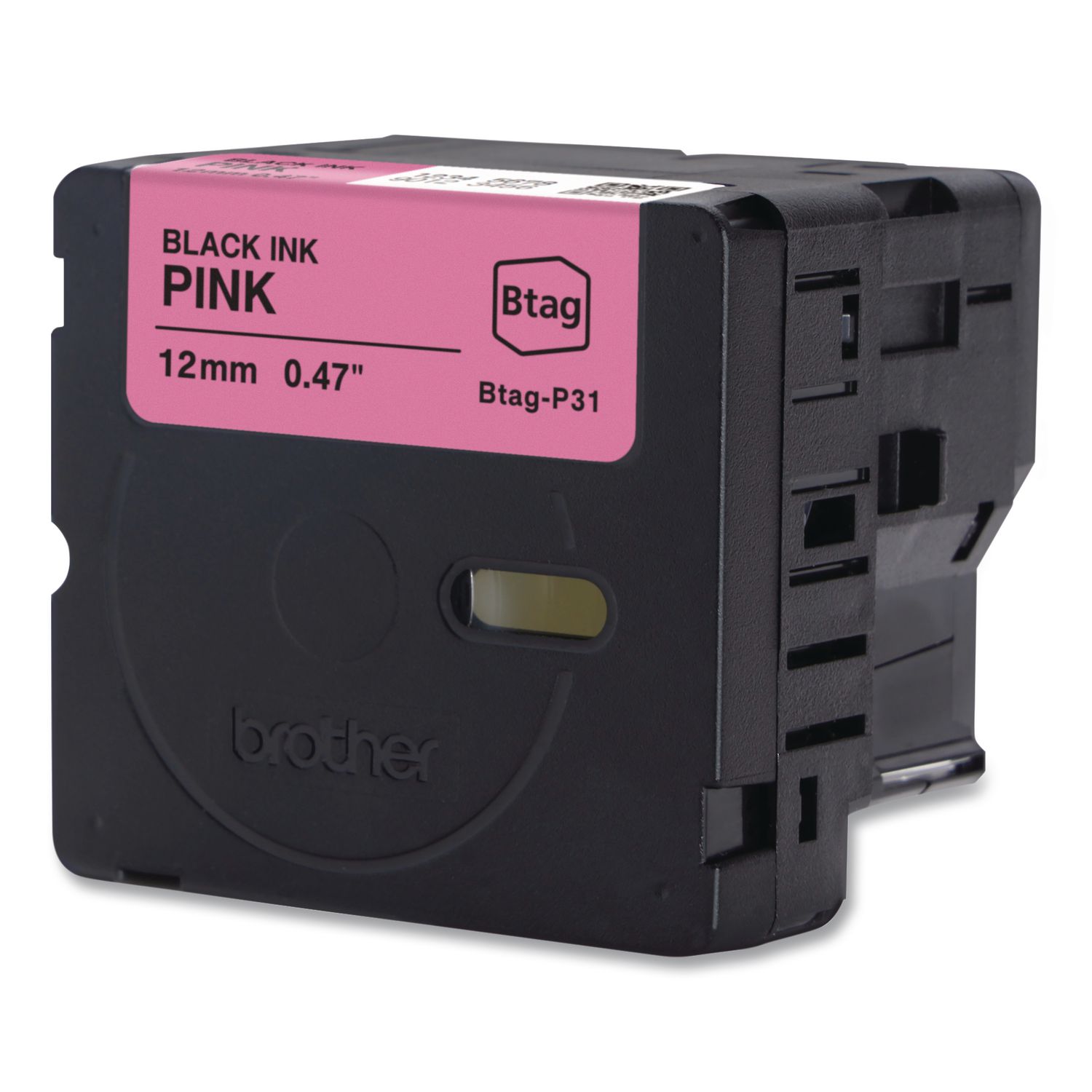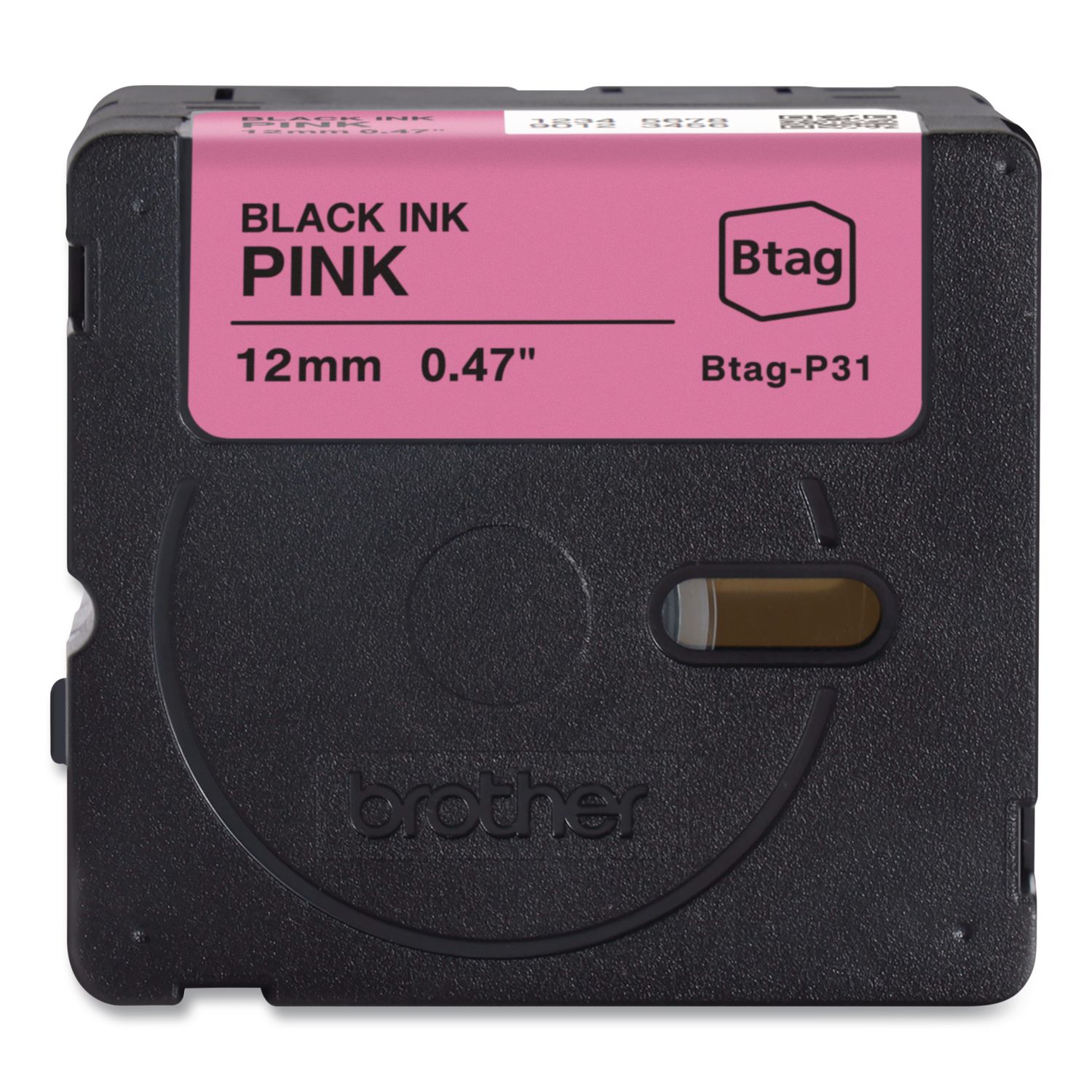 Genuine P-Touch BTAG Label Tapes, 0.47″ x 13.1 ft, Black on Pink