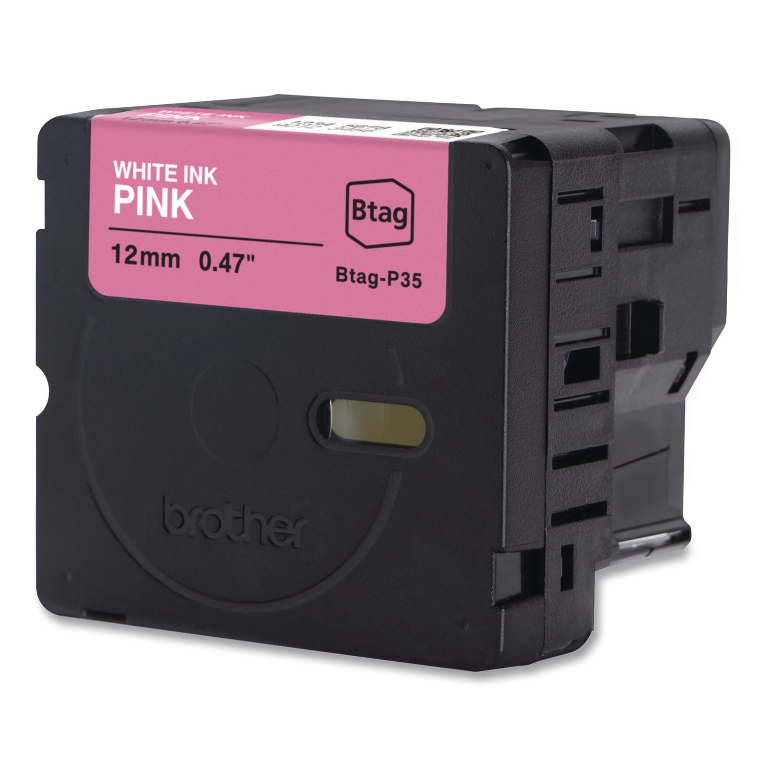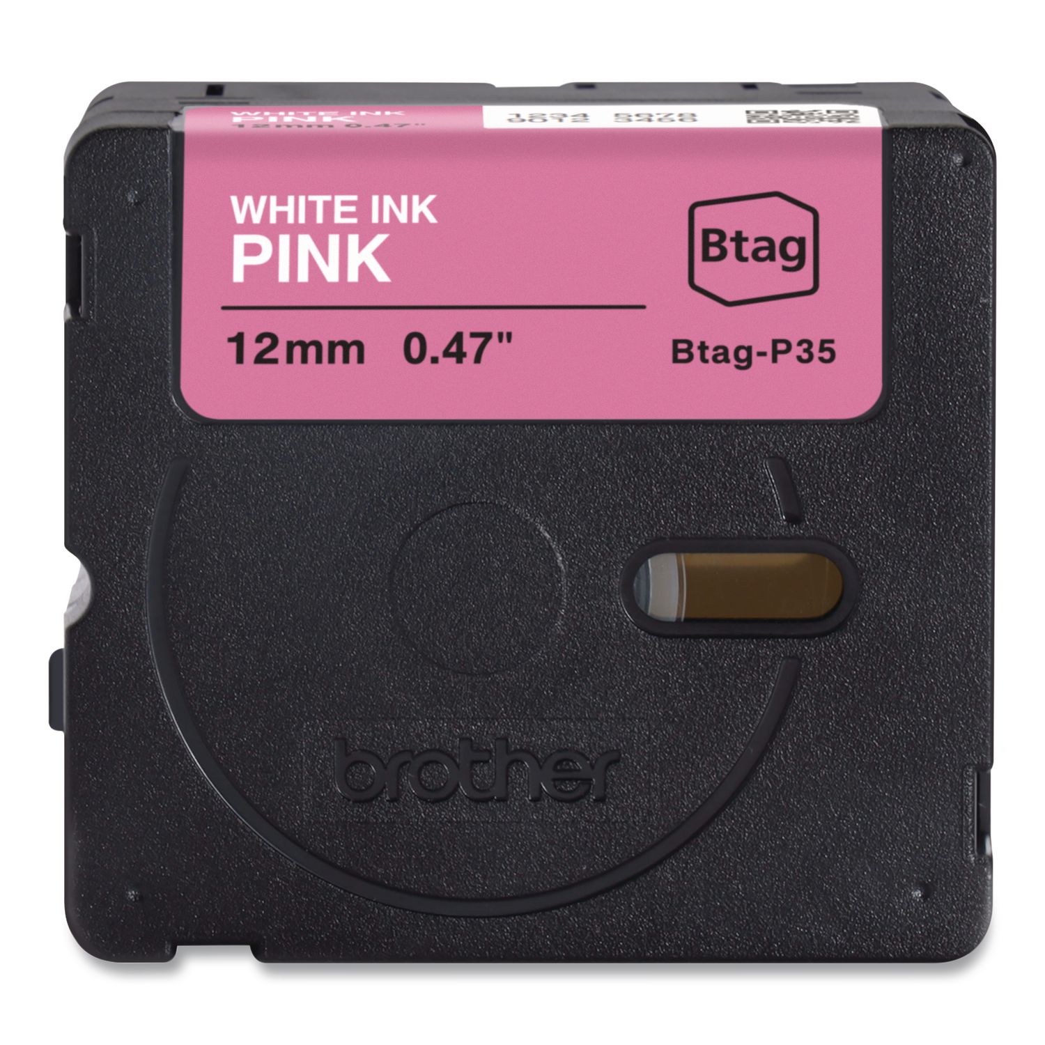 Genuine P-Touch BTAG Label Tapes, 0.47″ x 13.1 ft, White on Pink