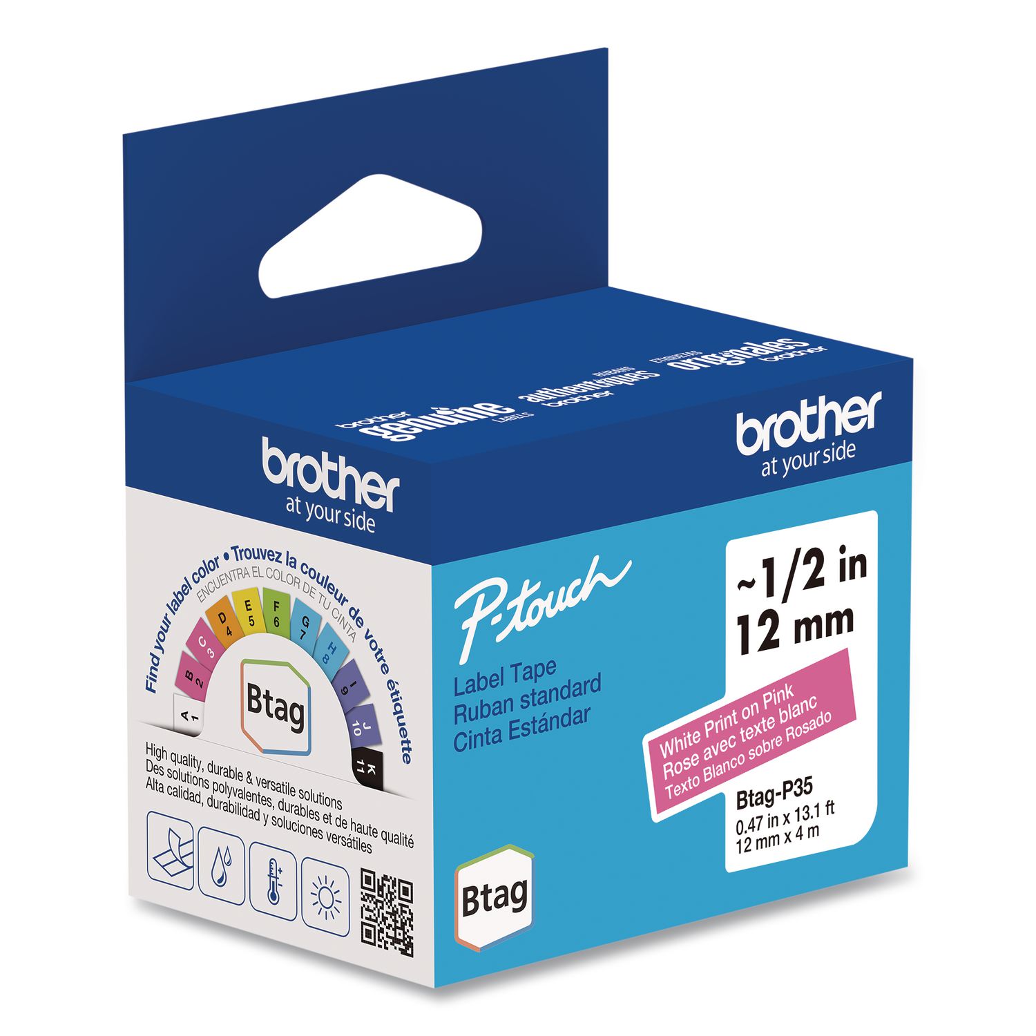 Be creative. Be unique. Btag. Colorful tapes to match your mood, match a task or match your favorite personal belongings. Quick, easy application on so many things. Featuring split, easy peel backings for efficient application and damage-free removal. Designed for everyday labeling needs, they’re water-, temperature-, fade- and household liquids-resistant, plus microwave-, dishwasher- and freezer-resistant, too. From heating up leftovers to cleaning up the kitchen, Btag has you covered. Label Size – text: 0.47″ x 13.1 ft; Label Color(s): Pink; Machine Compatibility: Brother P-Touch® PT-N10, PT-N20, PT-N25BT; Text/Label Colors: White Print on Pink Tape.