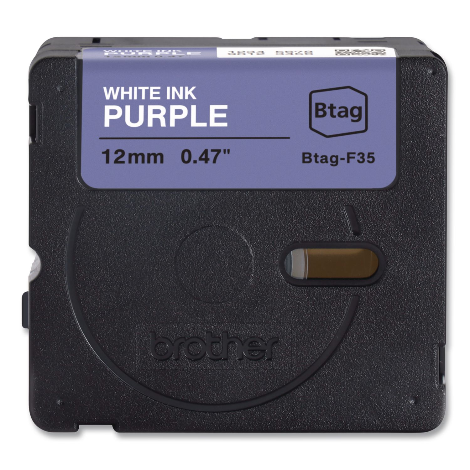 Genuine P-Touch BTAG Label Tapes, 0.47″ x 13.1 ft, White on Purple