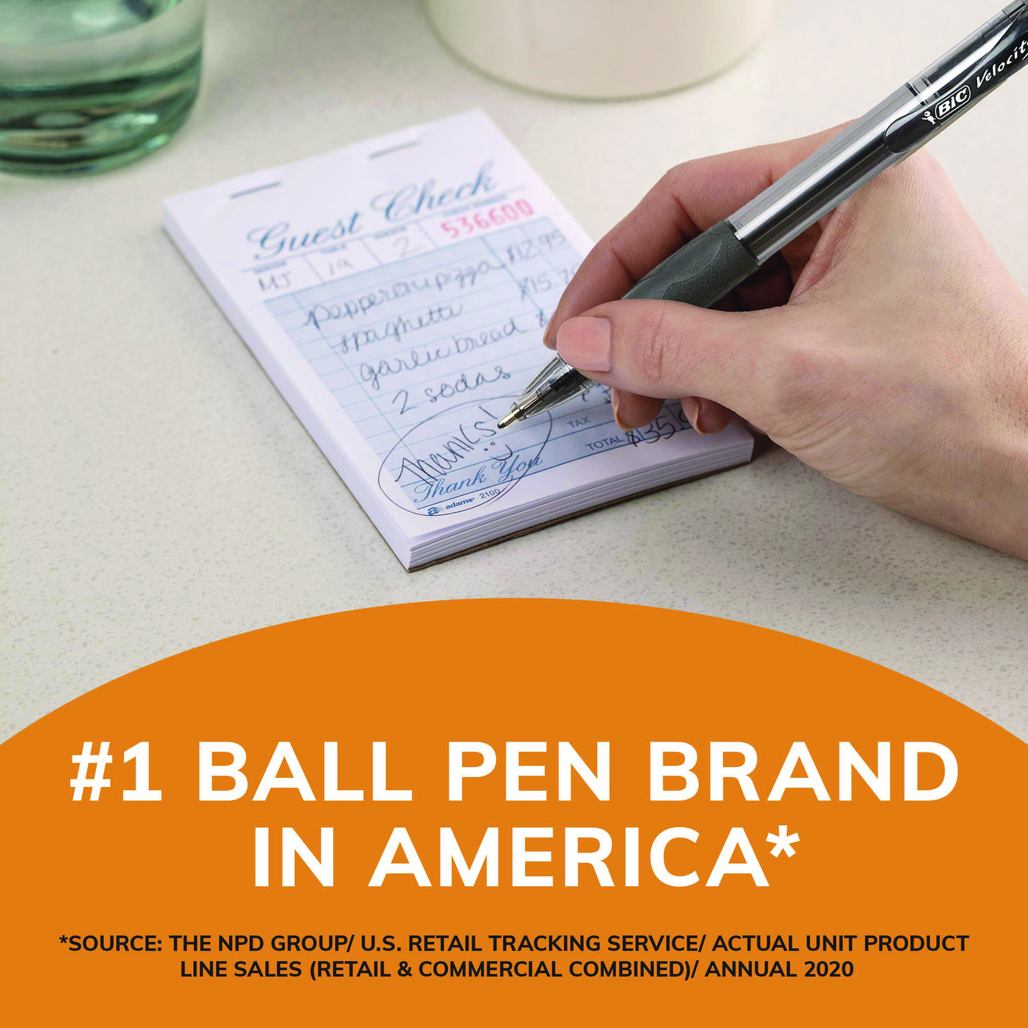 Be bold with the GLIDE Bold Retractable Ball Pen. Vivid and ultra-smooth, this pen features BIC’s smoothest writing system yet, even smoother than BIC’s classic paste-ink system. A 1.6 mm precision tip and classic ballpoint design ensure excellent line quality and solid, reliable performance. A comfortable rubber grip and a convenient, plastic pocket clip deliver easy writing while allowing you to keep the pen with you wherever you go. Smooth-click, retractable pen mechanism. Pen Sub-Brand & Product Family: GLIDE Bold; Pen Type: Ballpoint Pen; Pen Style: Retractable; Pen Tip Type: Conical.