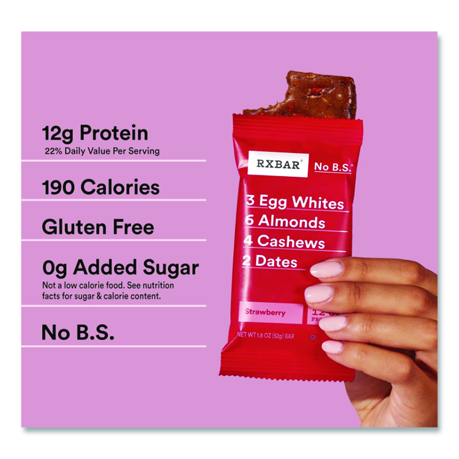 People love strawberries; drizzled on cheesecake or thrown into your favorite smoothie recipe. But what about gluten-free bars, each packed with 12 grams protein paired with a few other simple ingredients? Egg whites for protein, dates to bind, and nuts for texture. Strawberry goodness you know and love, all in a portable protein bar that matches your active lifestyle. Food Type: Nutrition & Snack Bars; Flavor: Strawberry; Capacity (Weight): 1.83 oz; Sugar Free: No.