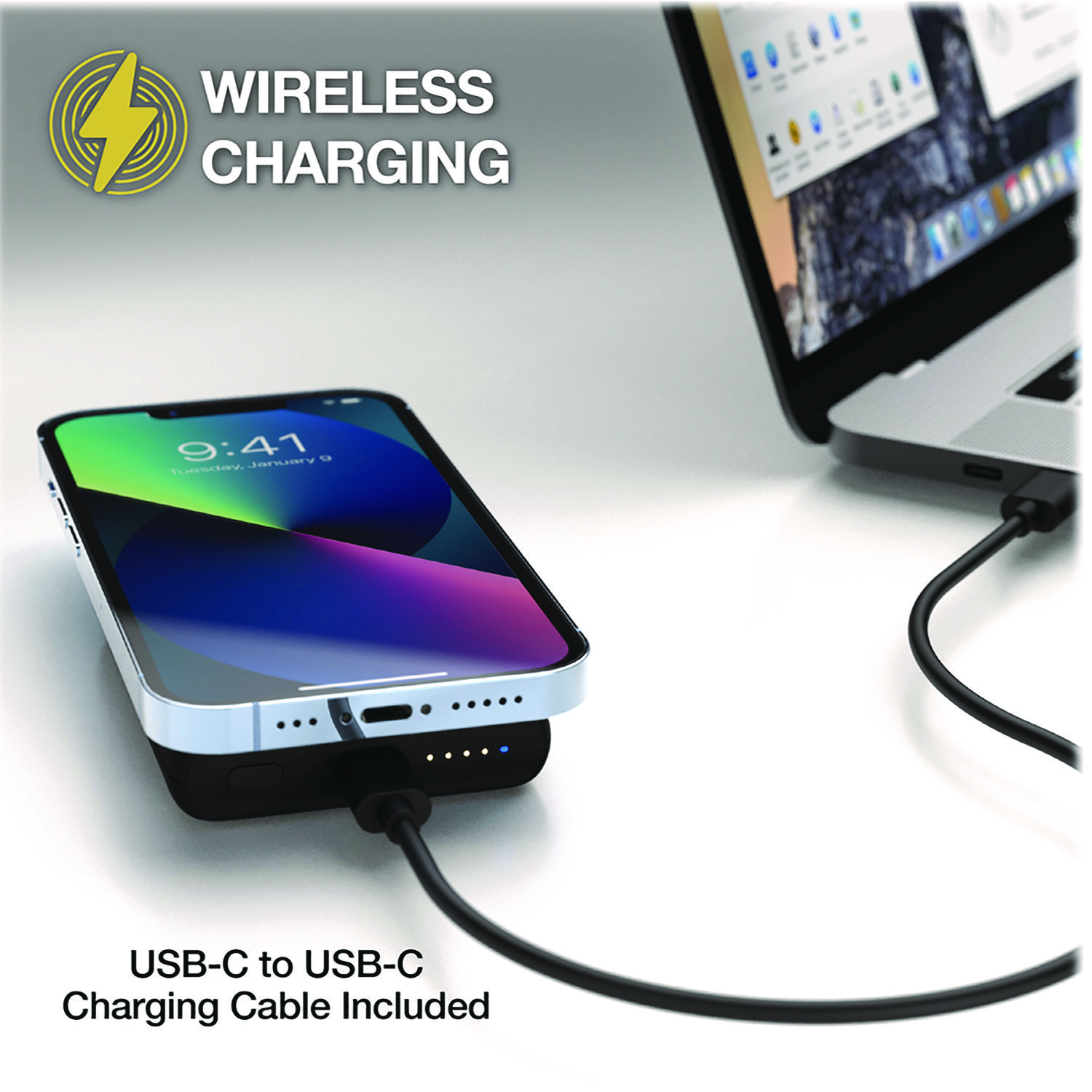 A perfect power bank can really save your bacon when you unexpectedly run out of juice. This compact and clever scosche 5000 mAh power bank will have you covered now, and when you change phones, with options for MagSafe, wireless, and wired charging. The 10 W USB Type-C port is perfect for fast-charging compatible phones or tablets whether at home, work, or on the go. For Device Type: Mobile Devices; Adapter/Charger Type: Portable Mobile Charger; Power Source(s): USB Port; Connector/Port/Interface: Qi Wireless Charging; USB-C.