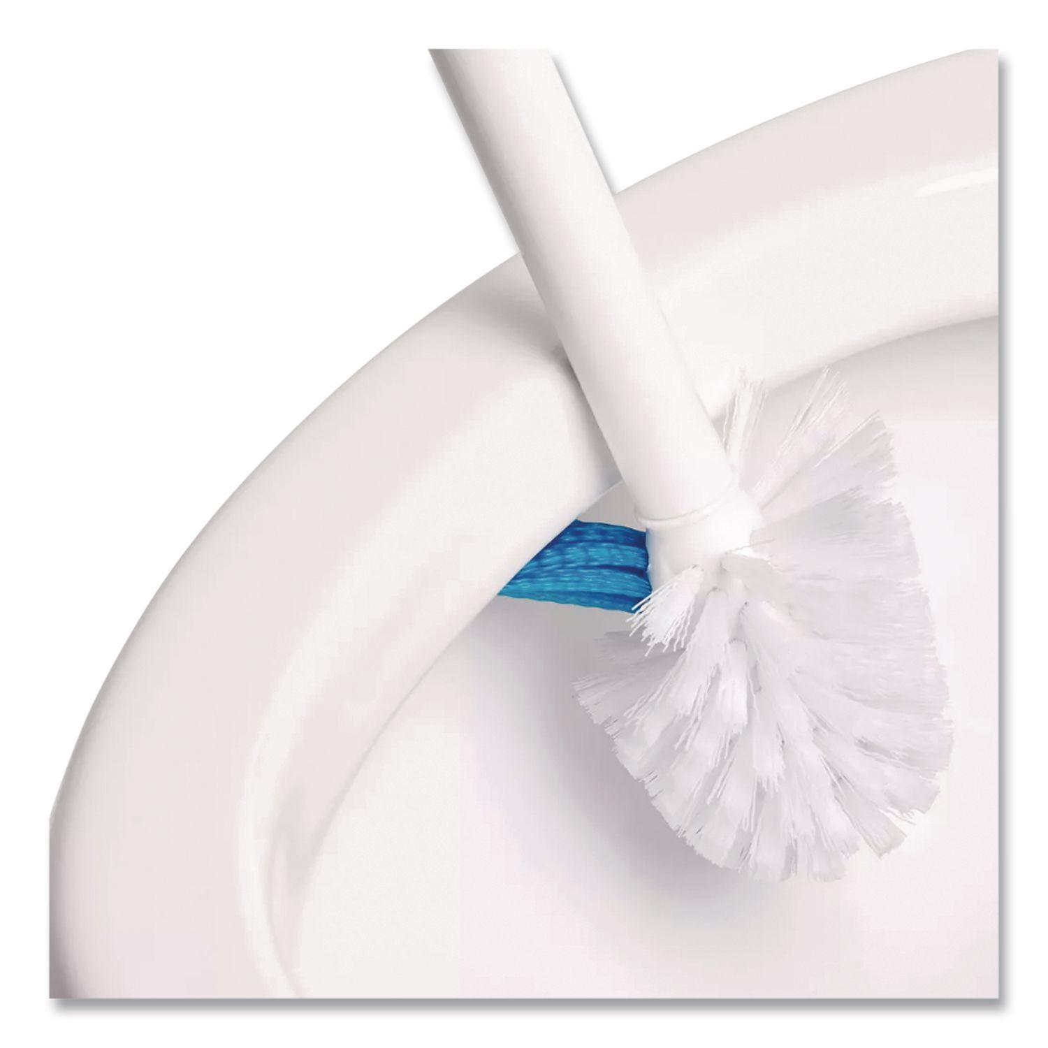Simply lift the brush and the canister automatically springs open. Patented flexible neck easily gets under the rim and other hard-to-reach places. Brush has durable nylon bristles and tapered shape for deep cleaning. Canister’s built-in drip tray catches excess water and allows it to evaporate. Overall Length: 18.5″; Handle Material: Plastic; Diameter: 5″; Color(s): White.