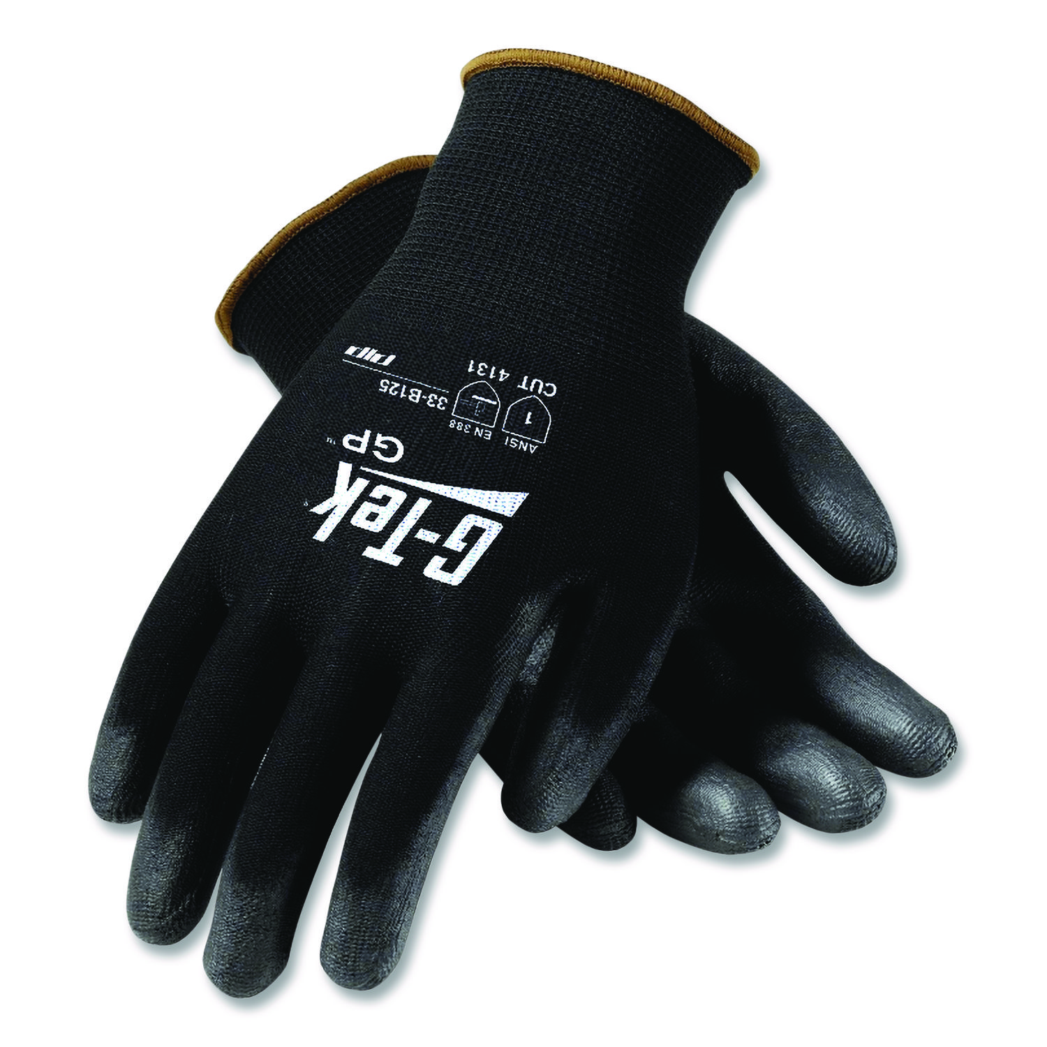 Keep yourself and your crew properly equipped. G-TekĀ® GP gloves are ideal for electronic and computer assembly, quality-control and similar applications. Cut-, puncture-, abrasion- and tear-resistant nylon shell features a seamless, breathable design for increased comfort and improved finger dexterity. Polyurethane-coated fingertips and palm allow you to get a better grip on wet and/or oily objects. Knit wrist helps prevent dirt and debris from entering your gloves. Machine washable. ANSI Cut Resistance: A1; Anti-Vibration: No; EN 388 Badge: 1111; Size Type: Large.