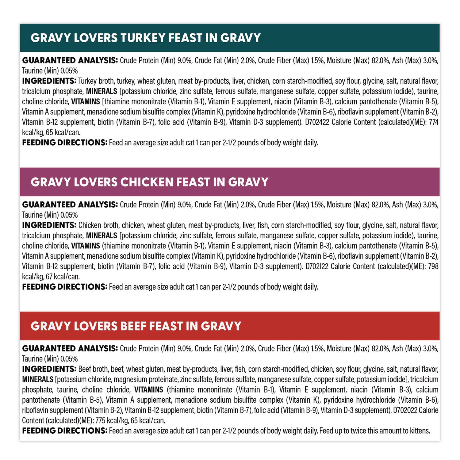 Flavor: (16) Beef Feast in Gravy; (16) Chicken Feast in Gravy; (16) Turkey Feast in Gravy