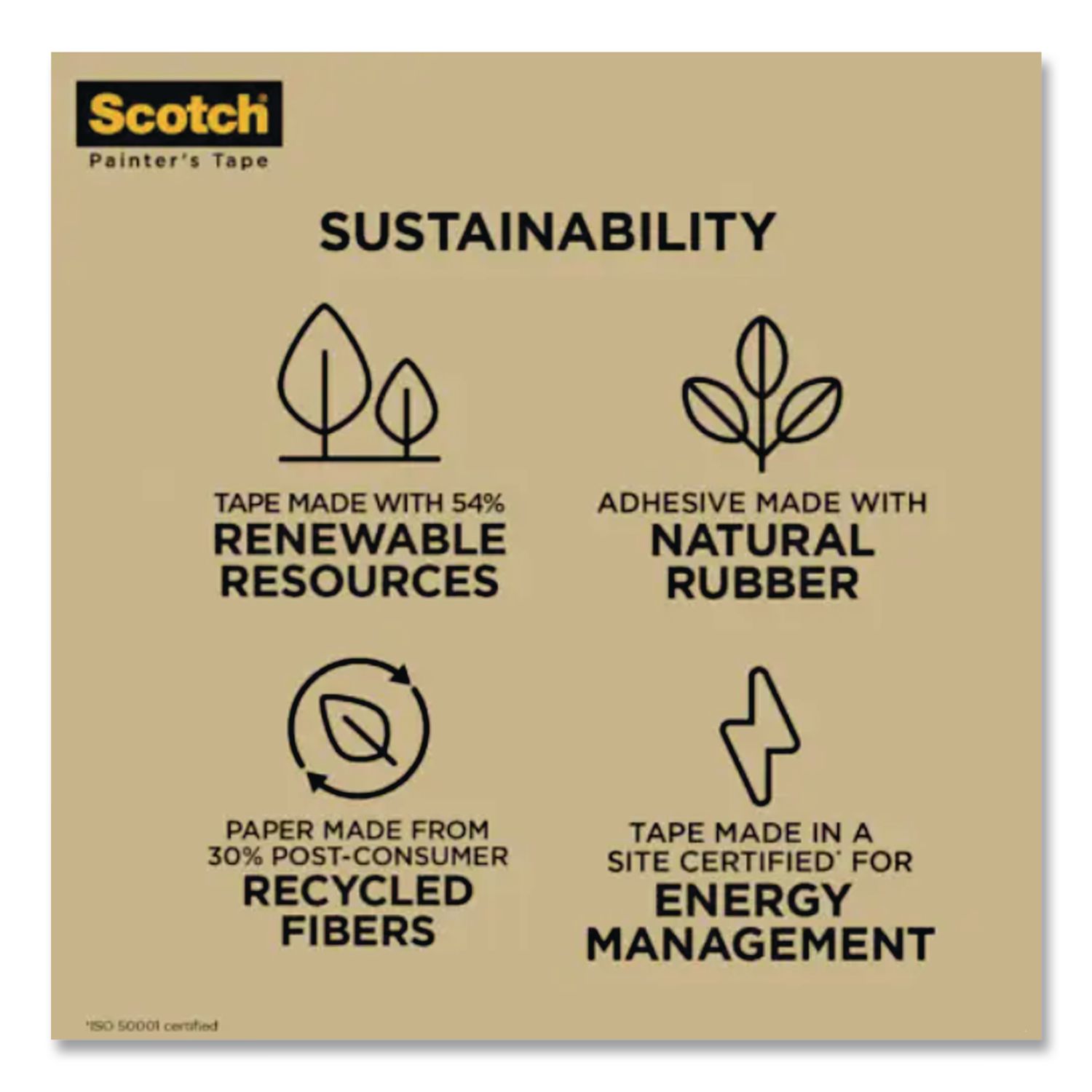| Green Information: | Made from 56% renewable resources. Paper made from 30% post-consumer recycled content; Core made with 70% post-consumer recycled content. Adhesive made with Natural Rubber; Tape made in a site certified for energy management (ISO 500001 certified) |
