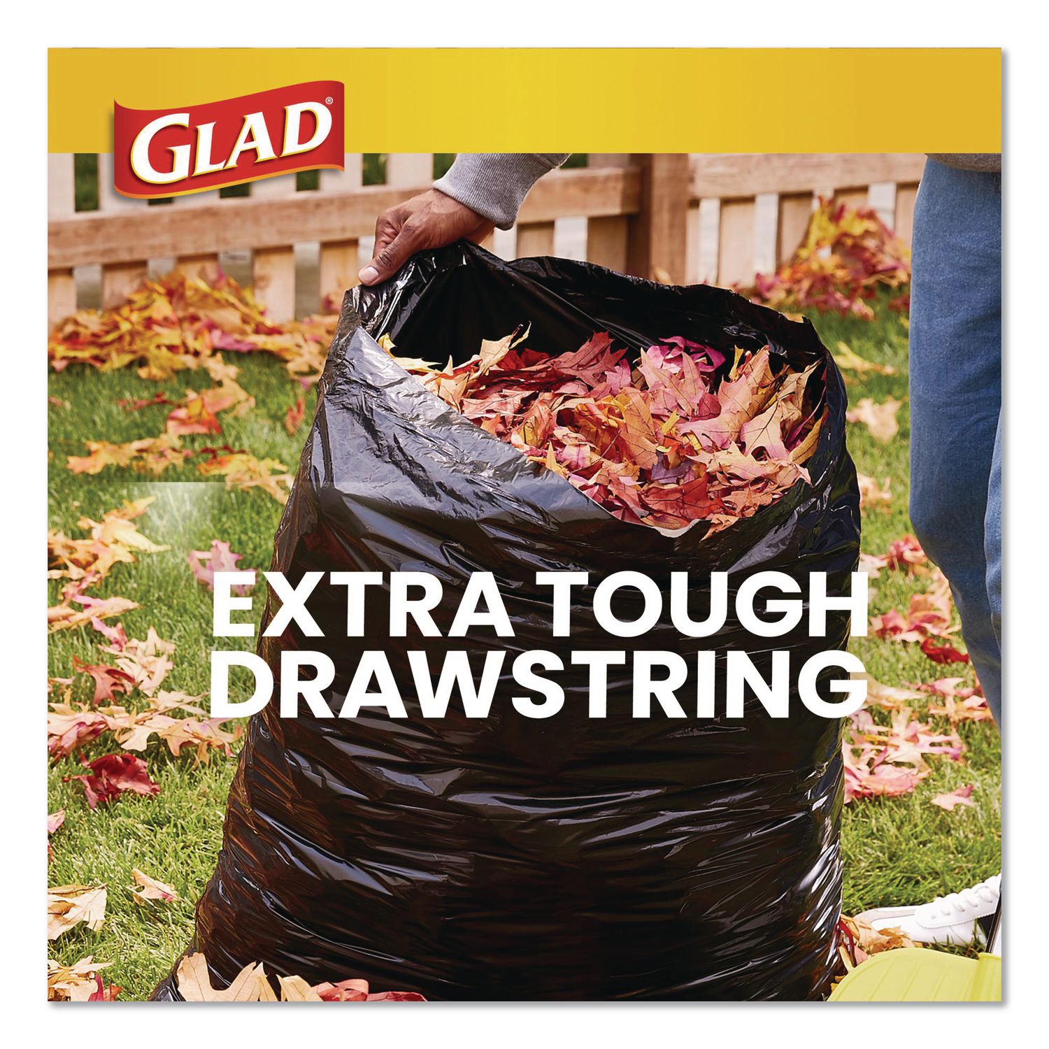 Trust Glad® extra strong trash bags for all your toughest jobs, indoors or outdoors. These heavy-duty trash bags are guaranteed strong to handle your biggest projects inside and outside the home. Prevent rips and tears with Glad’s unique design, allowing the bag to stretch at top while reinforced bands through middle contain bulky trash. The strong 3-ply drawstring grips the can so the bag stays in place and allows you to easily close the fullest bag when you’re ready to take it out. You can count on these bags to contain your messiest trash. Glad® garbage bags work as hard as you do to maintain a clean and active home, designed to handle your kitchen trash and tackle indoor and outdoor activities. Take on the trash and all your tough jobs with the confidence of Glad®. Guaranteed Strong—Three-ply strength to avoid messy trash disasters. Commercial/Consumer Use: Consumer Use; Maximum Volume Range: 21 to 30 gal; Maximum Volume Capacity: 30 gal; Waste Bag Thickness: 1.05 mil.