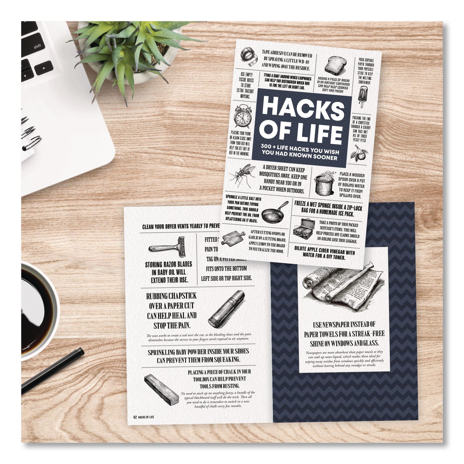 A curated treasure trove of ingenious life hacks that cover everything from everyday tasks to complex challenges. Inside, you’ll discover clever shortcuts for time management, organization, cooking, and even personal growth. From budget-friendly solutions to unexpected uses for common household items, Life Hacks provides a wealth of knowledge to help you navigate life’s hurdles with finesse. Embrace—or gift— the art of smarter living! Specific Subject: Life Skills; Language(s): English; Book Format: Paperback; Digital Resource: No.