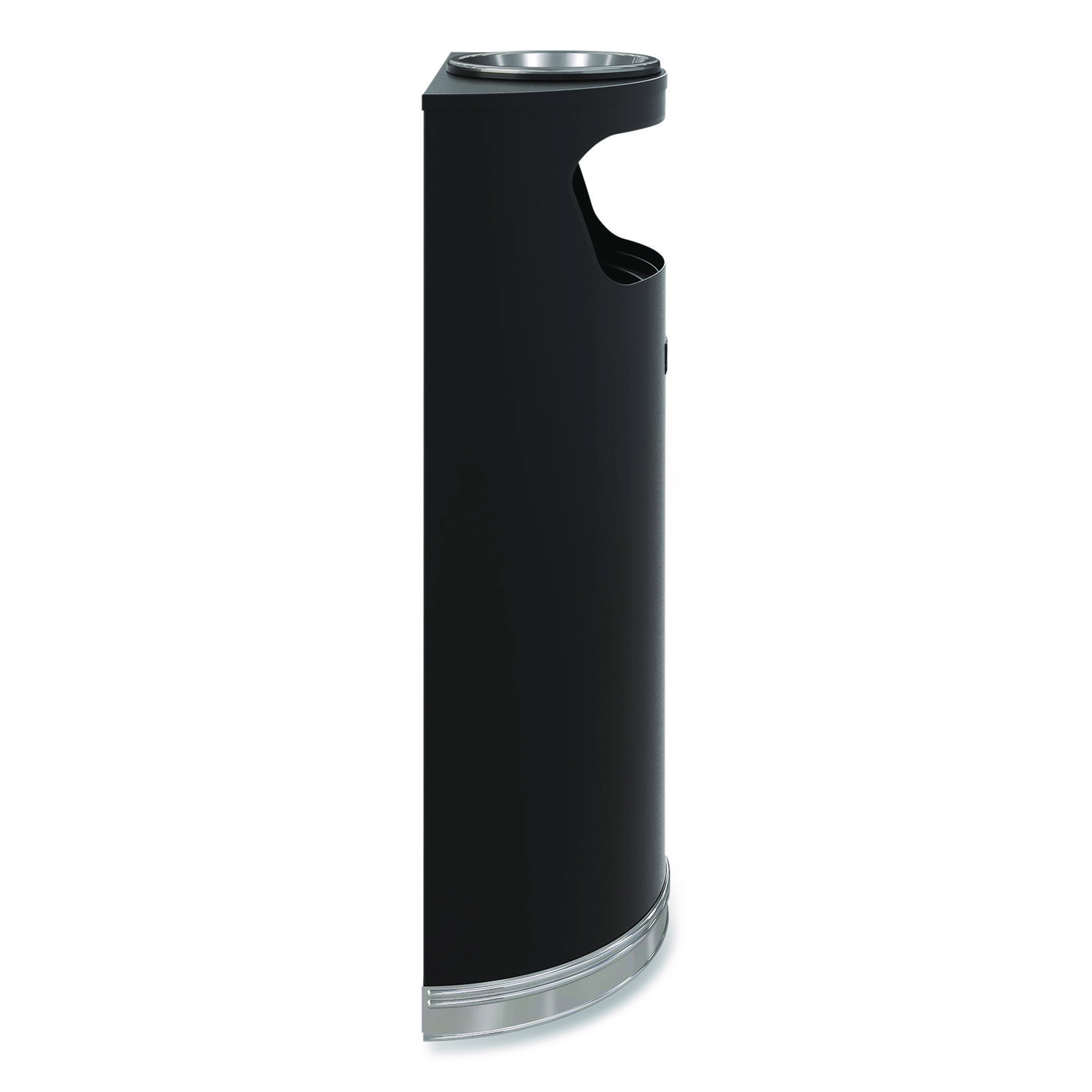 Half Round Metal Trash Can with Ashtray, 9 gal, Steel, Black