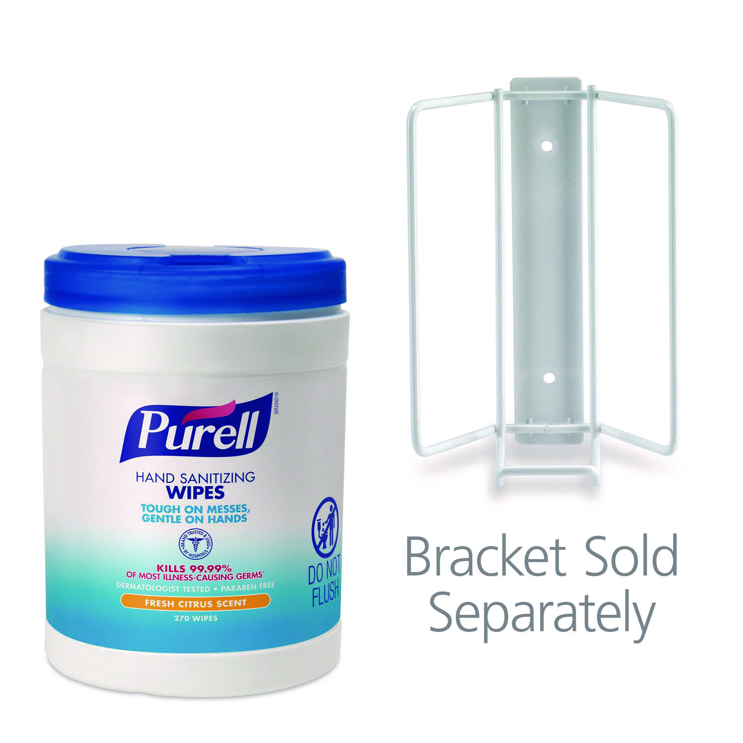 Provides convenient access to PURELL hand sanitizing wipes. Easily fastens to walls or other areas. For Use With: PURELL® 9031-06, 9113-06; Color(s): White; Size: 8.44 x 5.49 x 5.55.