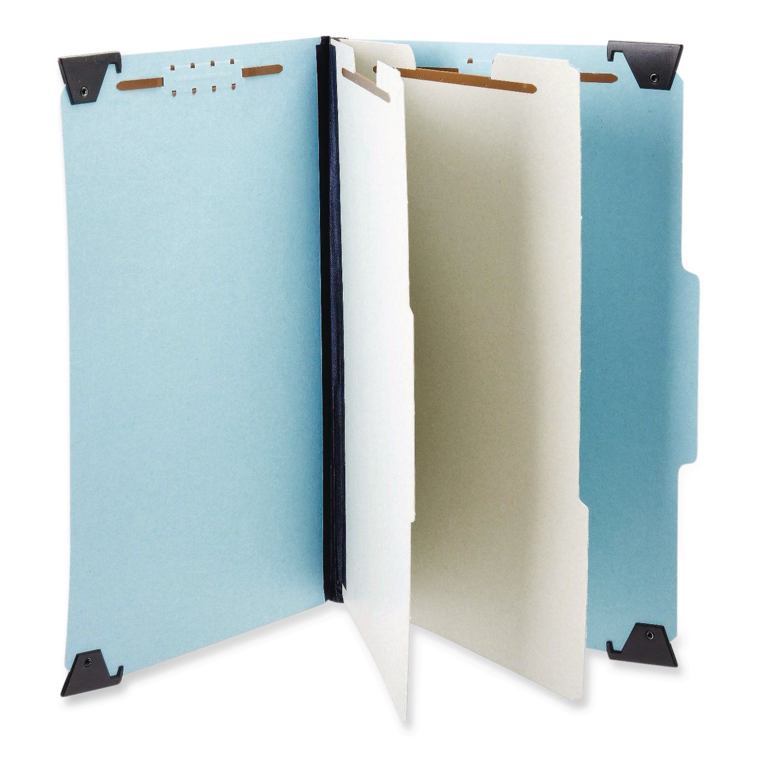 Keep related records in one hanging folder for faster referencing. Specially designed for managing projects, related papers can easily classified into different sections. Pivoting hangers fold down for carry-along convenience. 1″-capacity fasteners on both sides of 20 pt. pressboard dividers and inside both 25 pt. pressboard covers. Expandable reinforced rip-proof tape gusset bottom. Folder Size Type: Letter; Max Folder Expansion: 2.5″; Folder Color: Light Blue; Color Family: Blue.